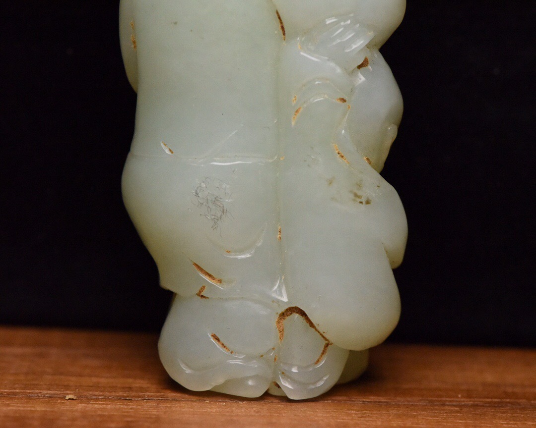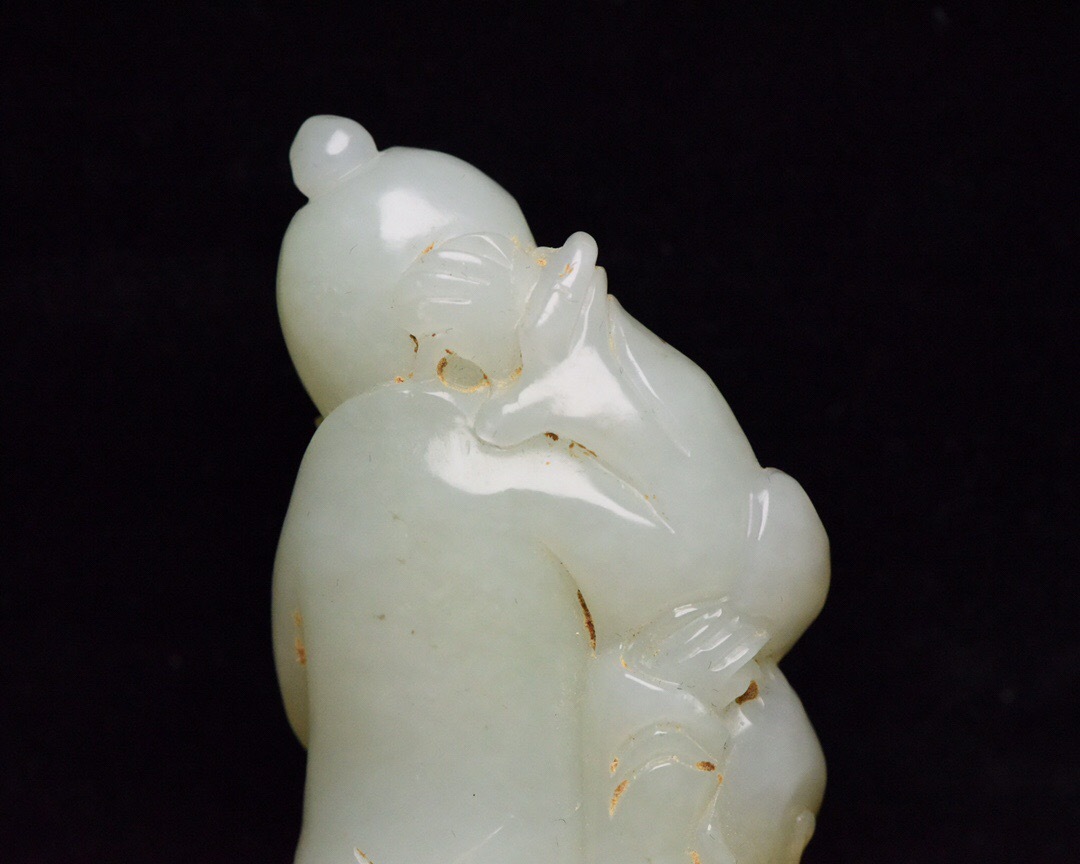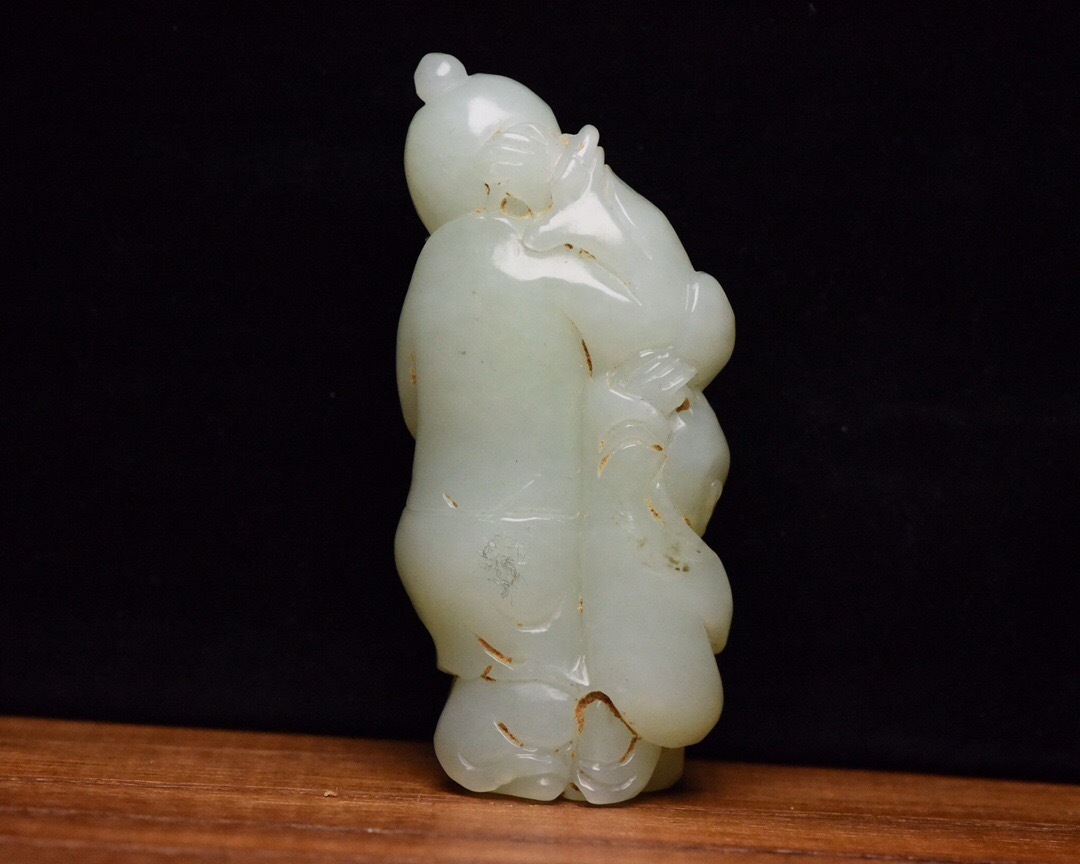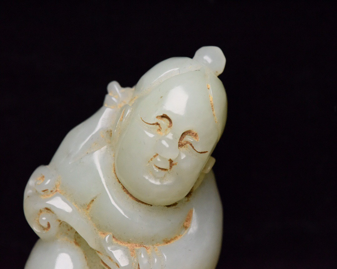 | 【蔵友館蔵品・和田玉製・細密彫・如意童子・置物・賞物】・古董品・中国古玩・時代物・希少珍品・中国時代美術 |