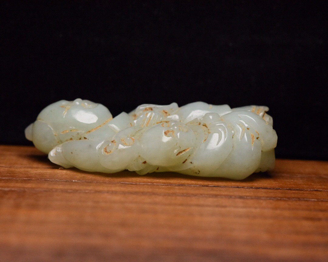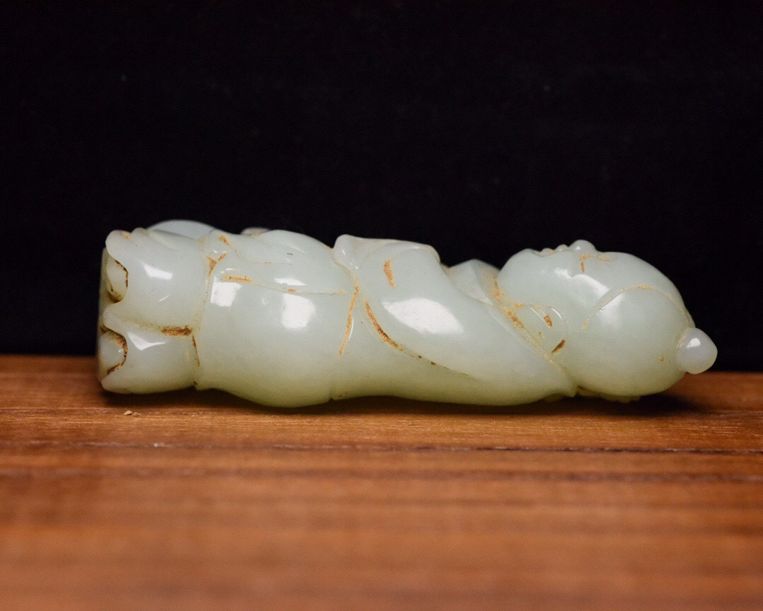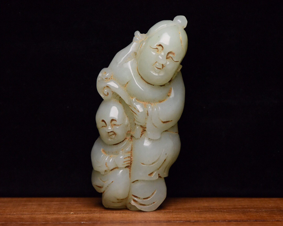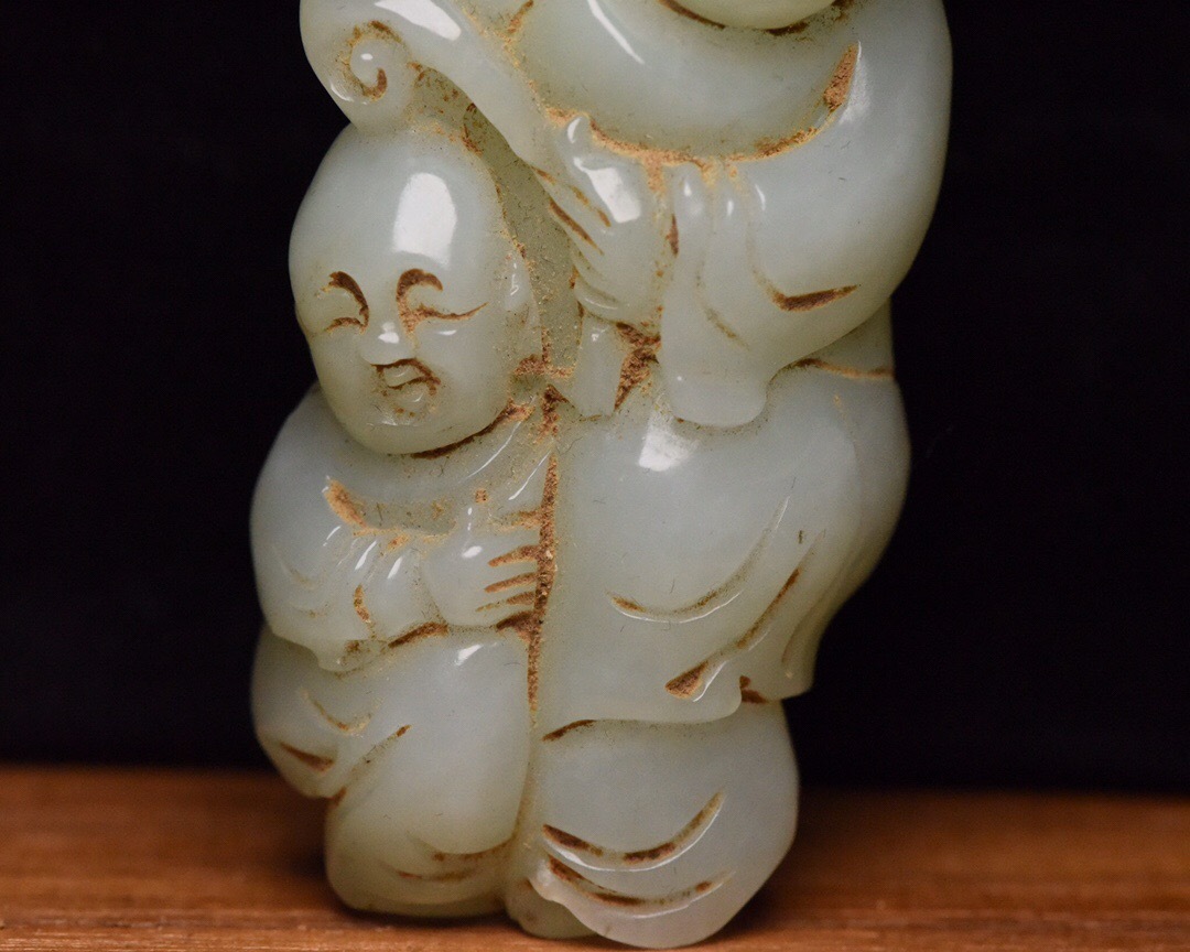 | 【蔵友館蔵品・和田玉製・細密彫・如意童子・置物・賞物】・古董品・中国古玩・時代物・希少珍品・中国時代美術 |