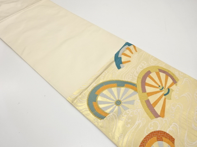 美品 流水に片輪車模様織り出し 袋帯 (ID3K-012)