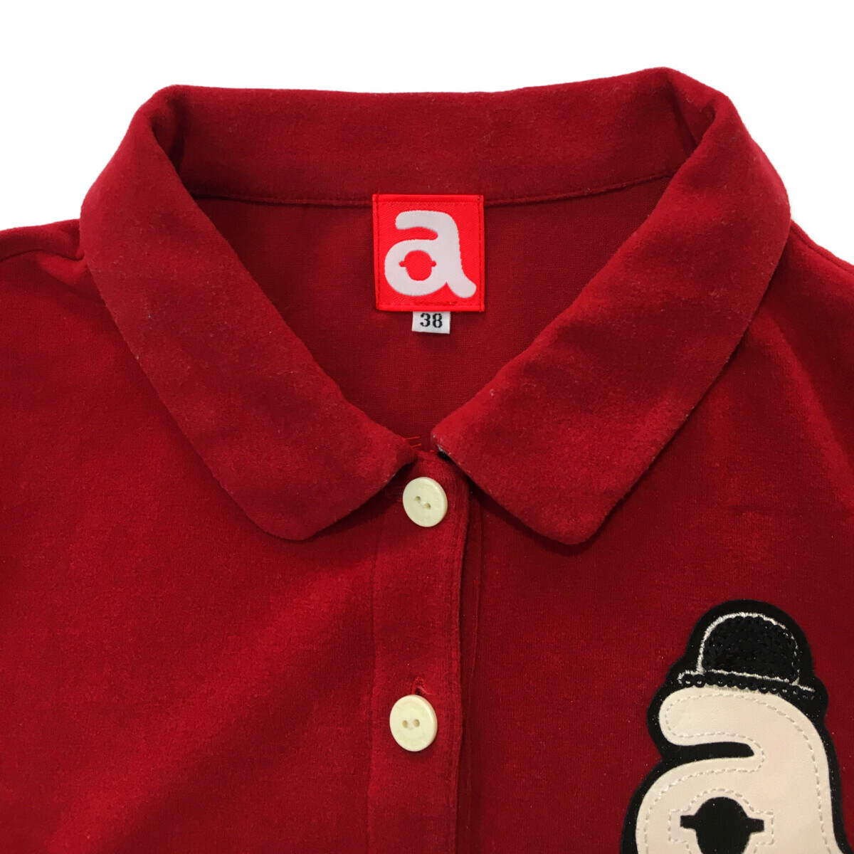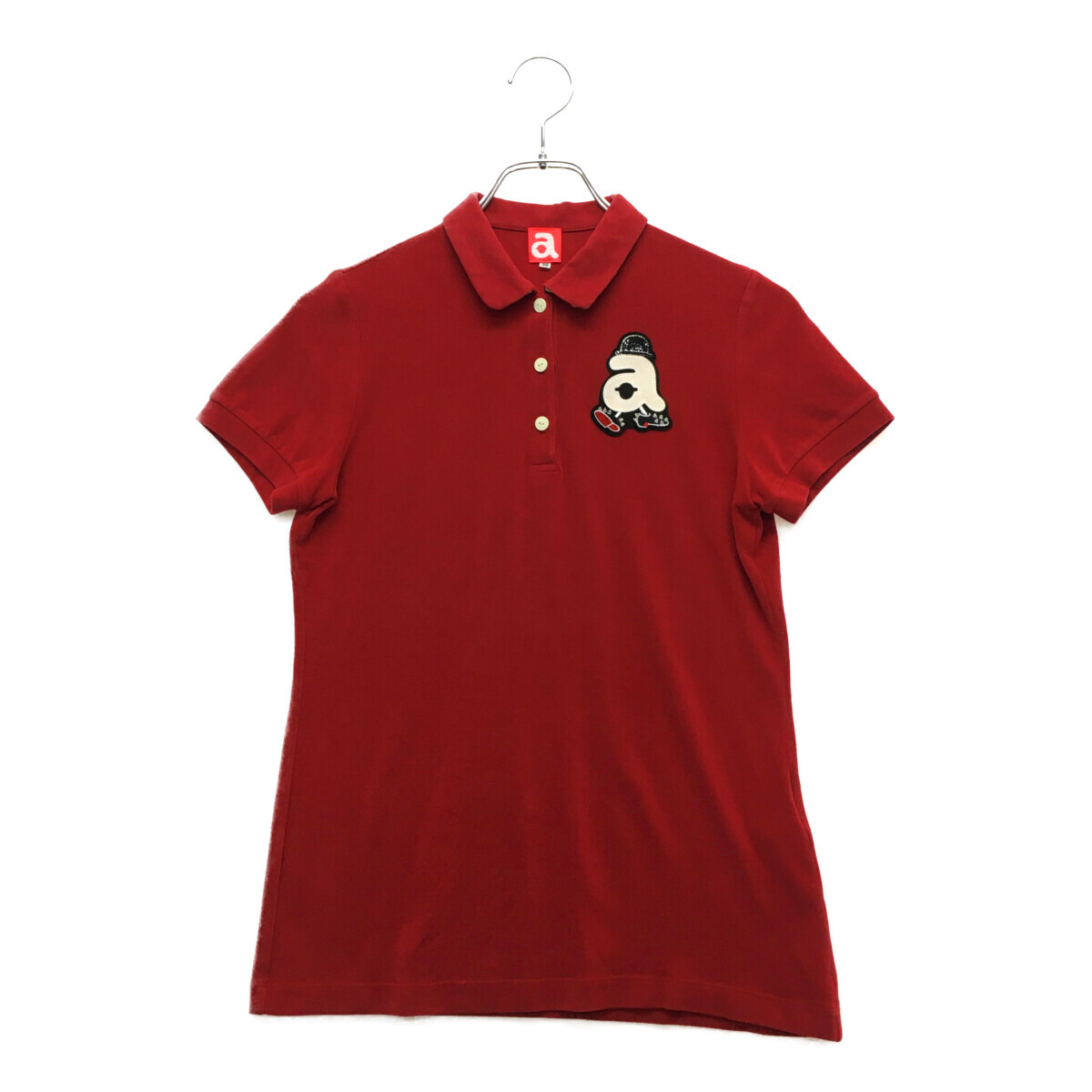 coco 中古【SALE】 アルチビオ archivio レディース 半袖ポロシャツ 38(M) 赤 レッド ベロア調 レターパックプラス発送可 95057