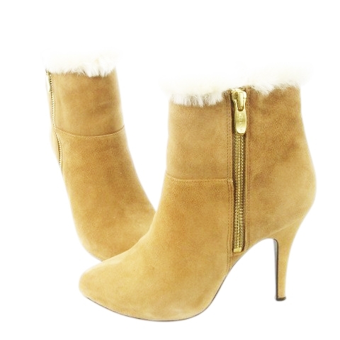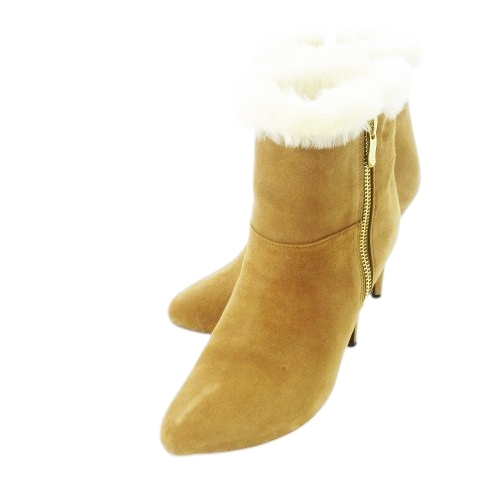 ダイアナ DIANA ショートブーツ ハイヒール アーモンドトゥ ムートン スエード ファー 23.0cm ベージュ /CK10 ■GY12 レディース