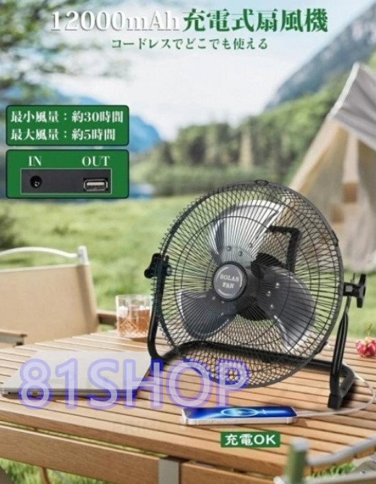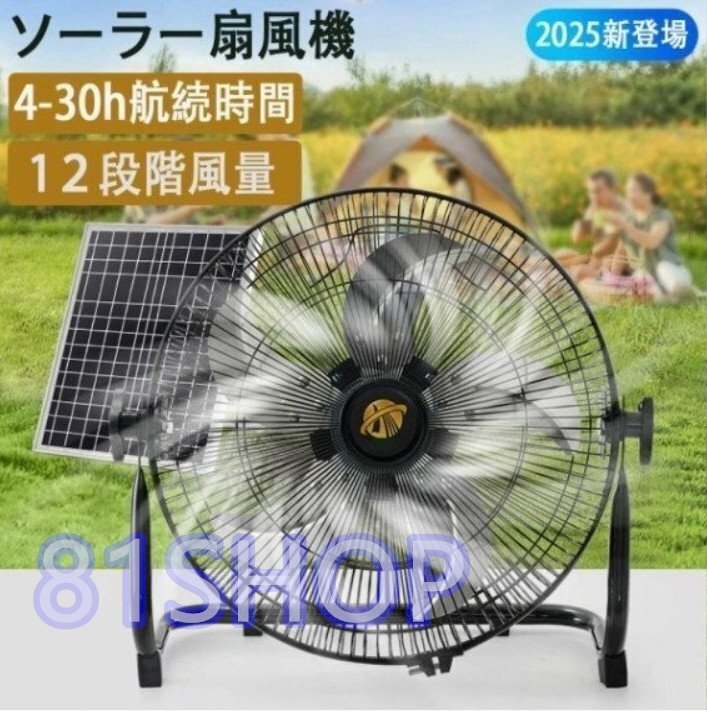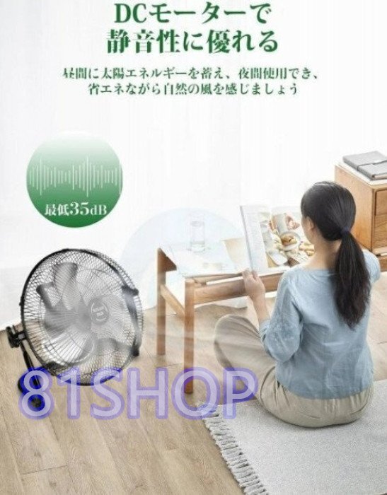 ソーラー扇風機 DCモーター 12インチ キャンプ扇風機 12段階風量 携帯扇風機 使用時間12-24H 防災グッズ 夜釣り用 アウトドア キャンプ