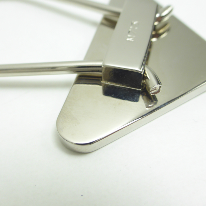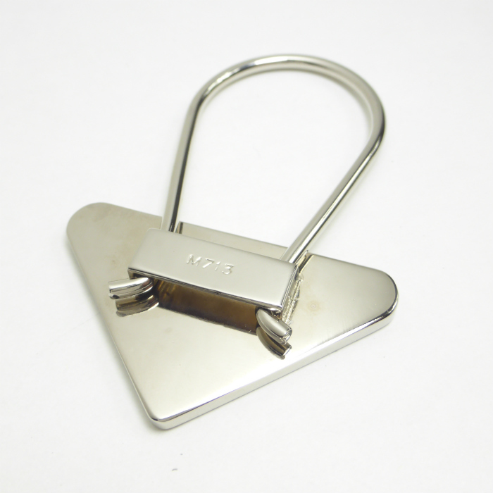 | トライアングルシェイプのプラダのキーリング。 メタルプレートにシルバートーンのPRADAロゴのシンプルなデザイン。 ベルトループやバッグに引っ掛けたり、チャームとしてシンプルなバックのちょっとしたアクセントにも大活躍するアイテムです。 |