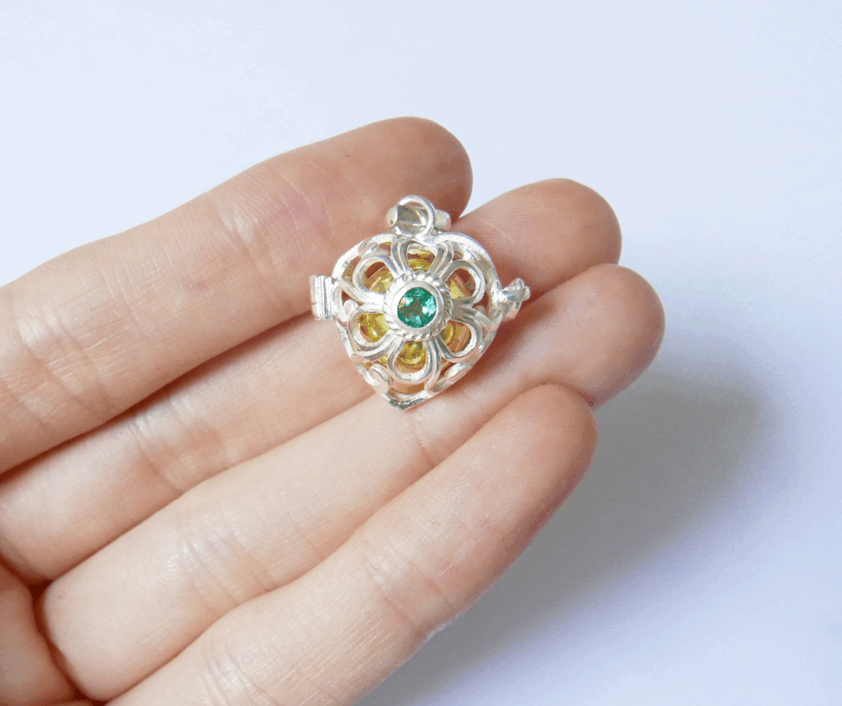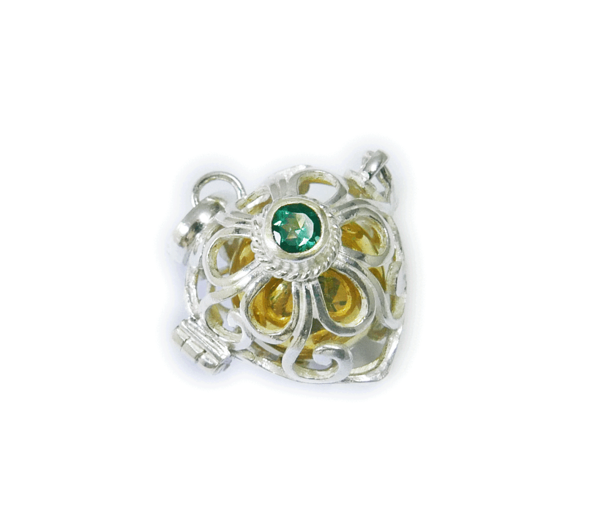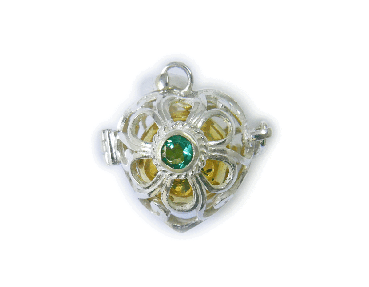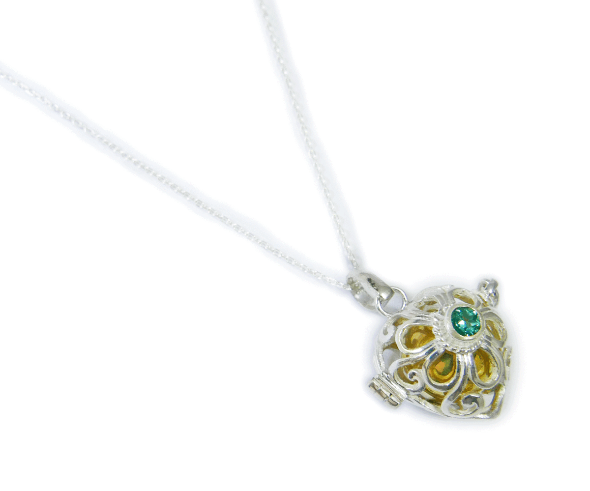 送料無料☆☆エメラルドのハート型のガムランボール☆☆揺らすとシャラン♪癒しの音色が響く・幸運のヒーリングペンダント☆☆シルバー925