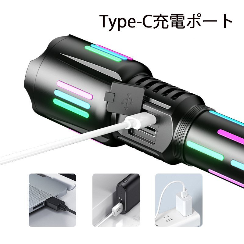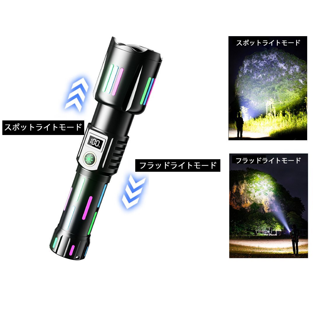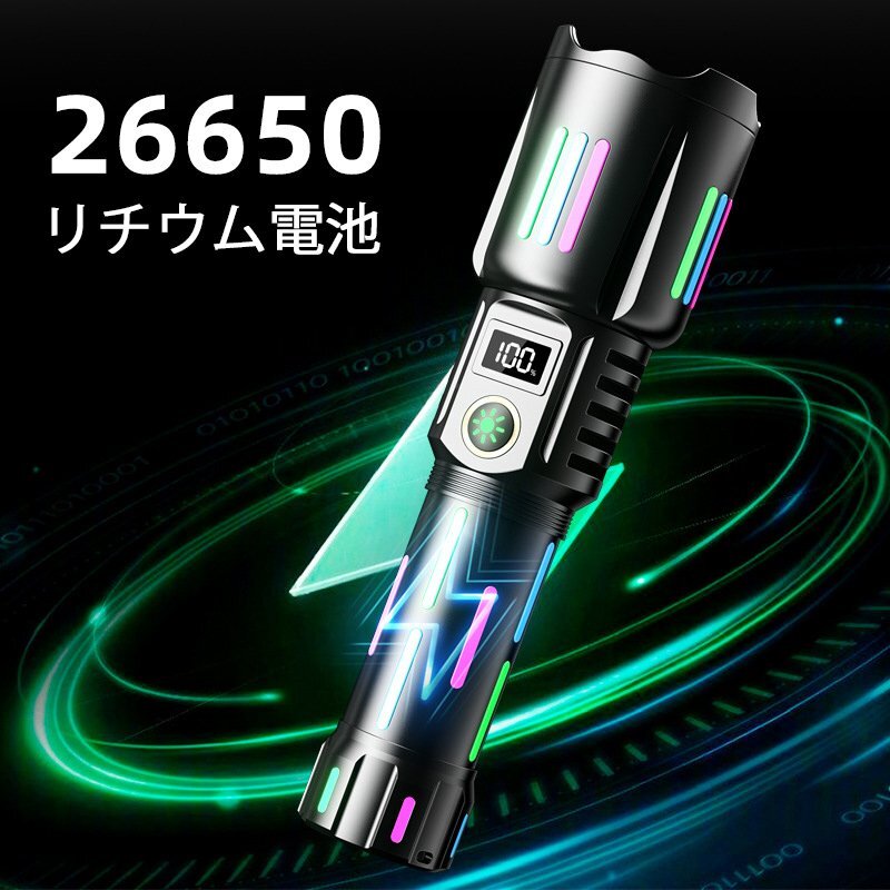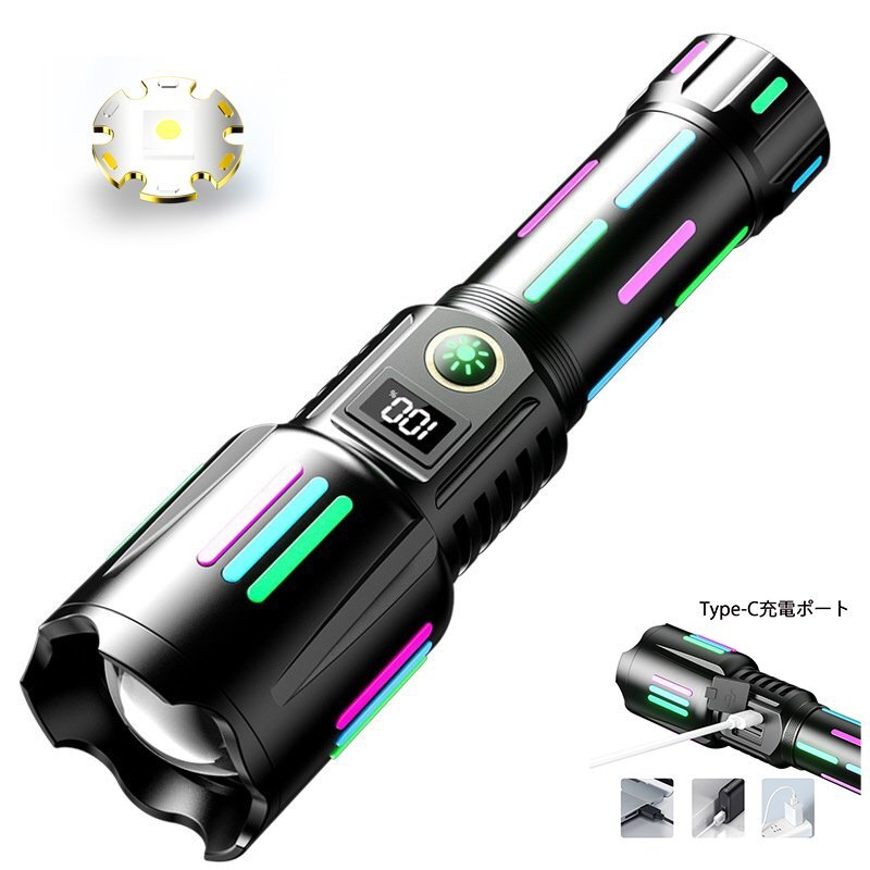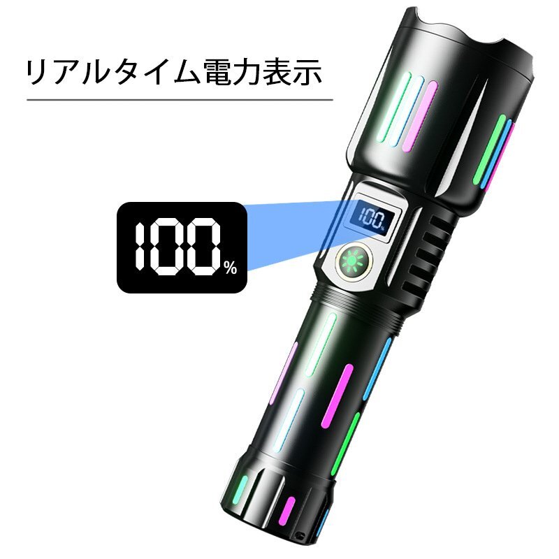 夜光懐中電灯 LED 強力 液晶画面 超高輝度 5モード調光 USB充電式 超長遠射 超強力 ズーム機能 623