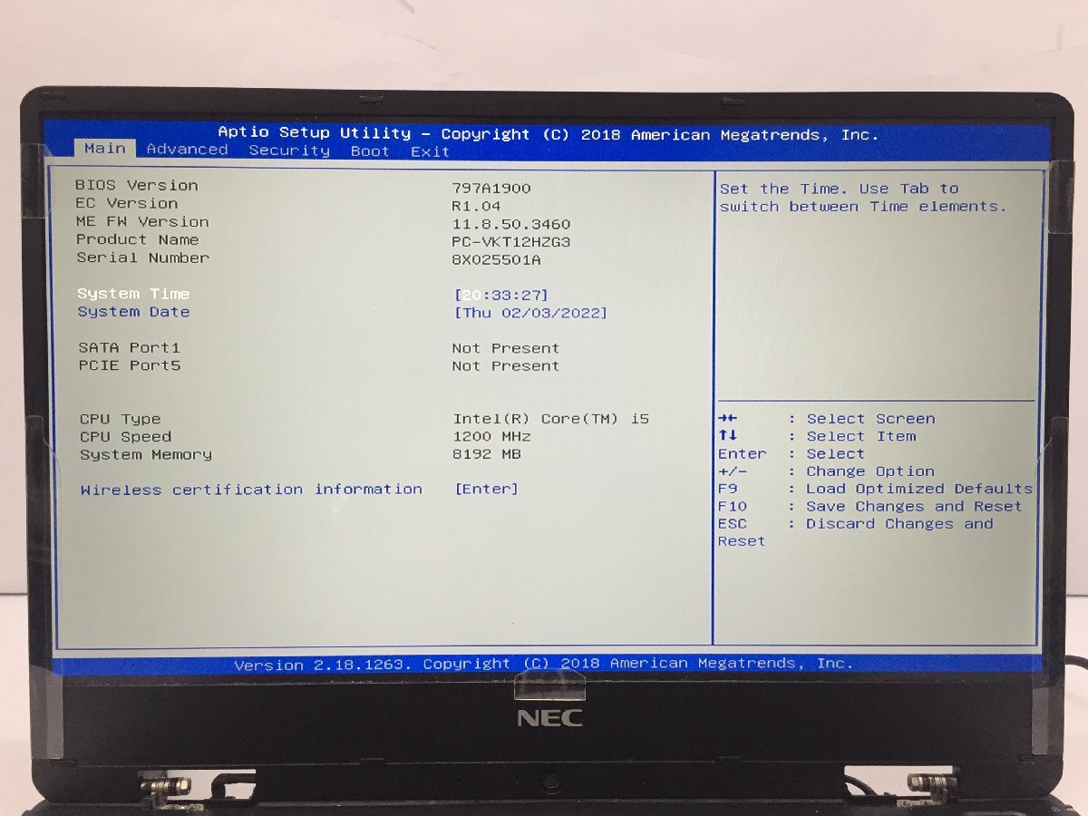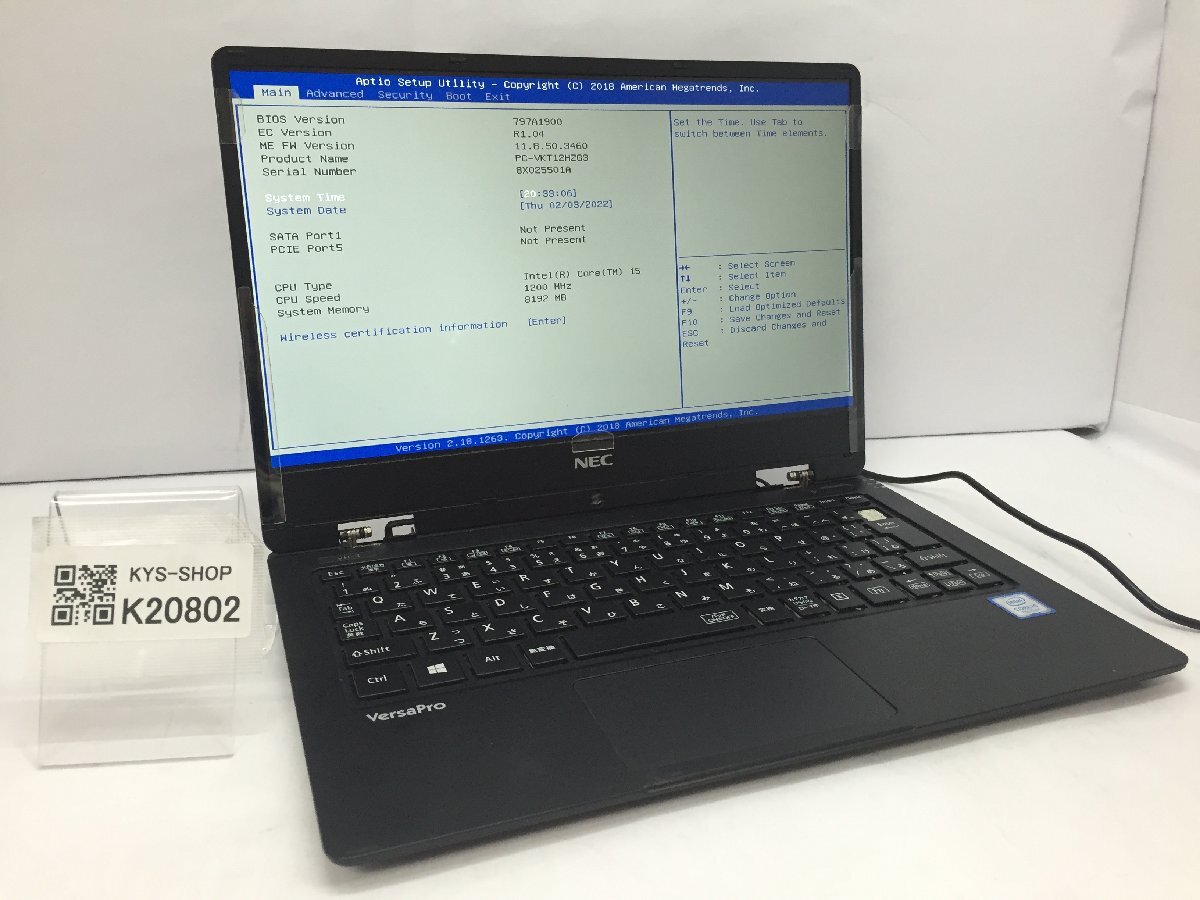 ジャンク/ NEC PC-VKT12HZG3 Intel Core i5-7Y54 メモリ8.19GB ストレージ無し 【K20802】
