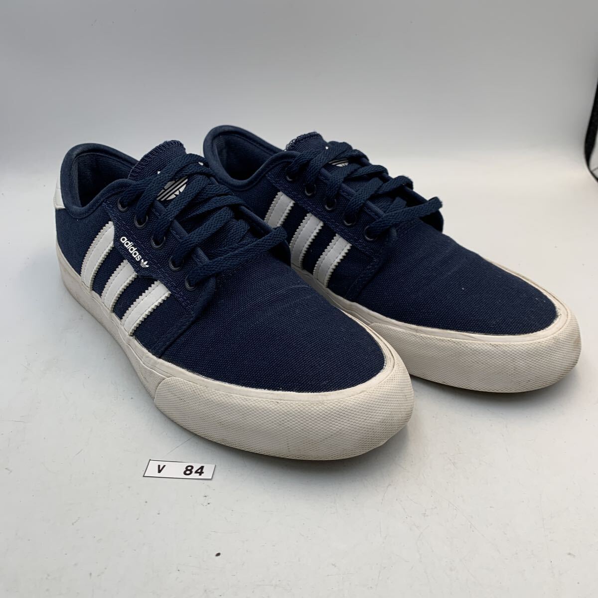 V084 adidas アディダス メンズ ローカットスニーカー US8 26cm ネイビー ホワイト キャンバス