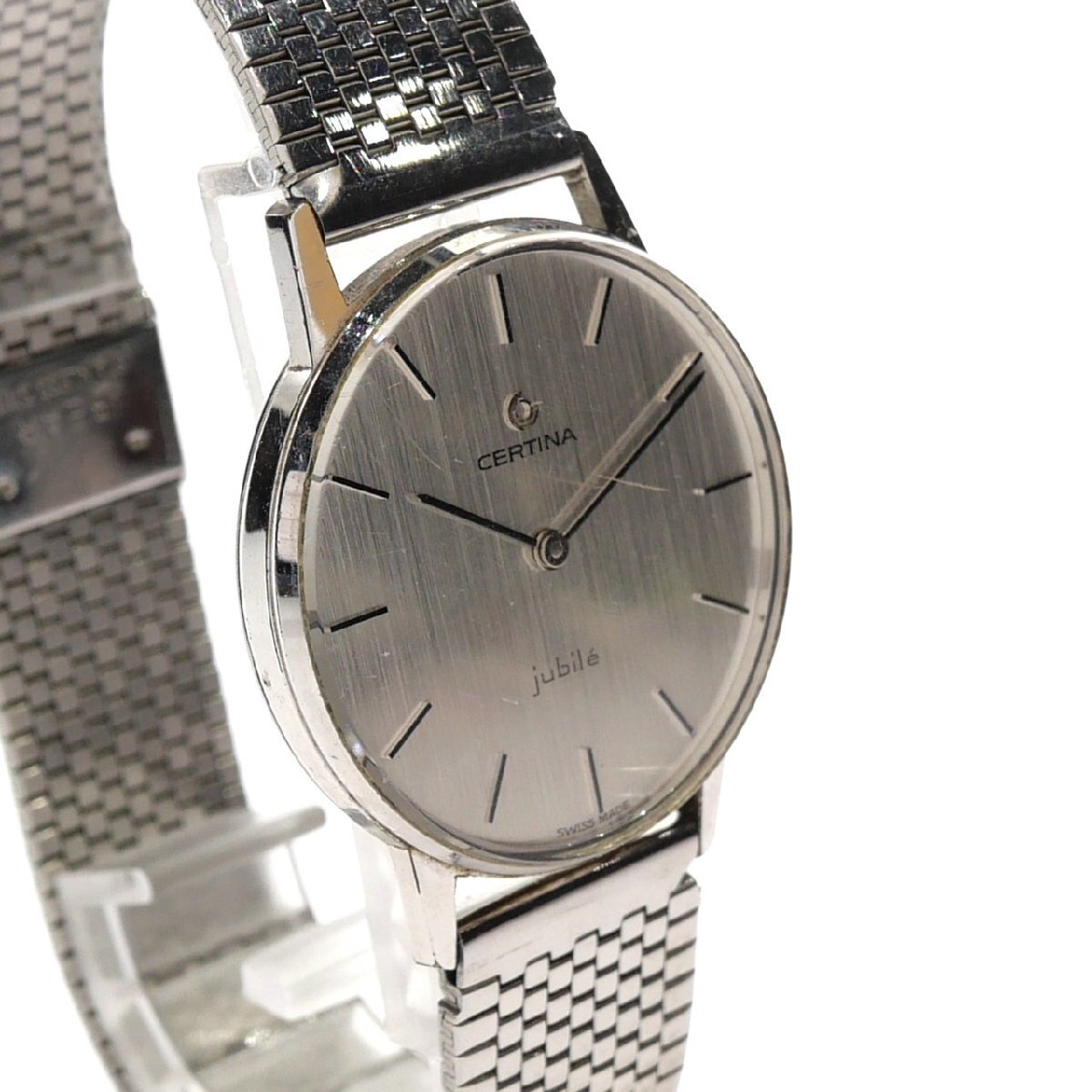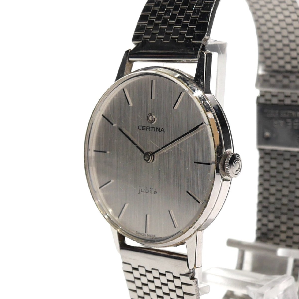 【商品詳細】 ※ブランド:CERTINA サーチナ ※商品名:ジュビリー ※型番:--- ※フェイス:約33mm ※腕周り:最長 約21cm ※素材:ステンレススチール ※文字盤:シルバー ※ムーブメント:手巻き ※稼動状態:稼働 ※付属品:--- 【商品状態】 ※風防含め全体的に傷がございます。 ※ケース、ベルトに少々くすみや汚れございます。 ※OH等詳しい検査は行っておりませんが、現状稼働しております。 ほか、商品画像を参考にご検討ください。 ご不明な点は入札前にご質問ください。 【 ご入札される前に必ずお読み下さい 】 ※「新規アカウントの方」・「評価が5件未満の方」の入札は原則お断りしております。 (いたずら入札/トラブル防止の為) 善意の入札希望の方は、入札前に質問欄より「入札のご意思」をお知らせください。 事前にお知らせなくご入札頂いた場合には、予告無しに「入札取り消し」させて頂きます。 ※「良い評価の割合が90%以下方」の入札はお断りしております。 (いたずら入札/トラブル防止の為) 入札及び落札がありました場合は、予告無しに「入札取り消し」及び「落札者都合による削除対応」をさせていただく場合がございますので予めご了承下さいませ。 ※当出品物は「評価不要」のご要望にはお応え出来ませんので予めご了承下さいませ。 |