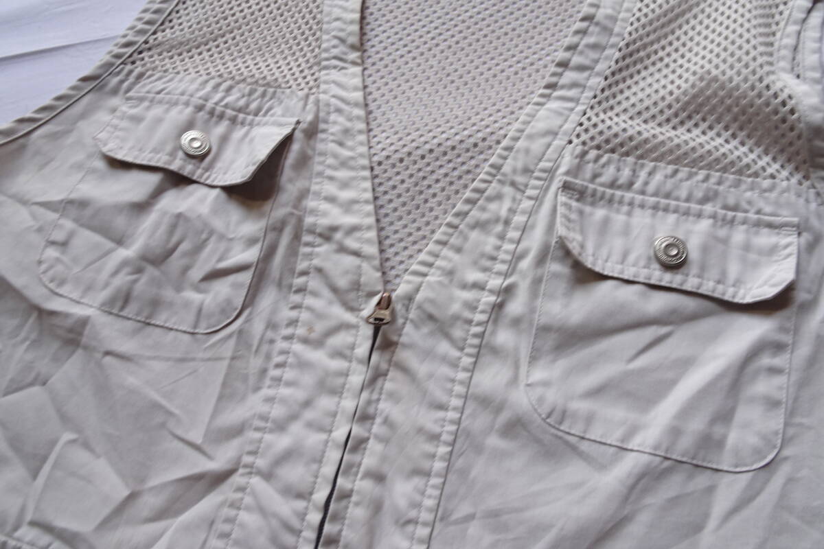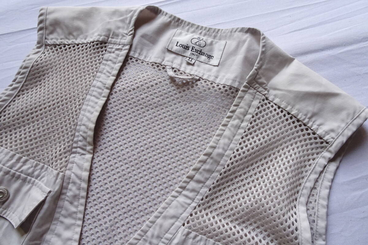 Louis Exchange/アウトドアベスト/メッシュ素材/Vネック/前ジップアップ/前身頃フラップポケット/白/ホワイト/LLサイズ(9/9R7)