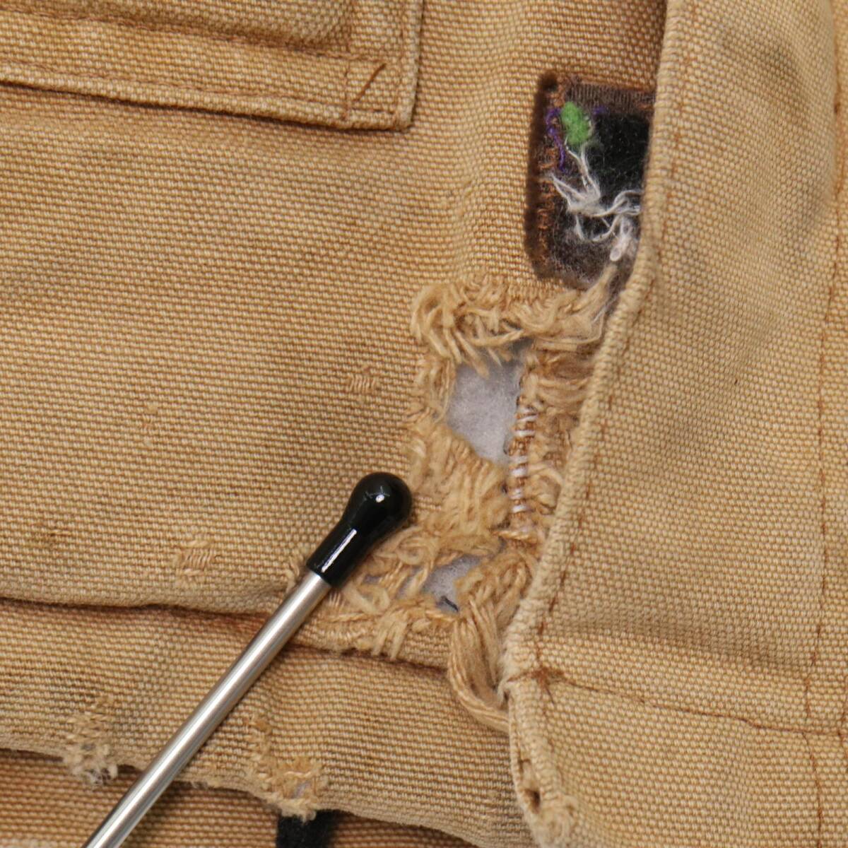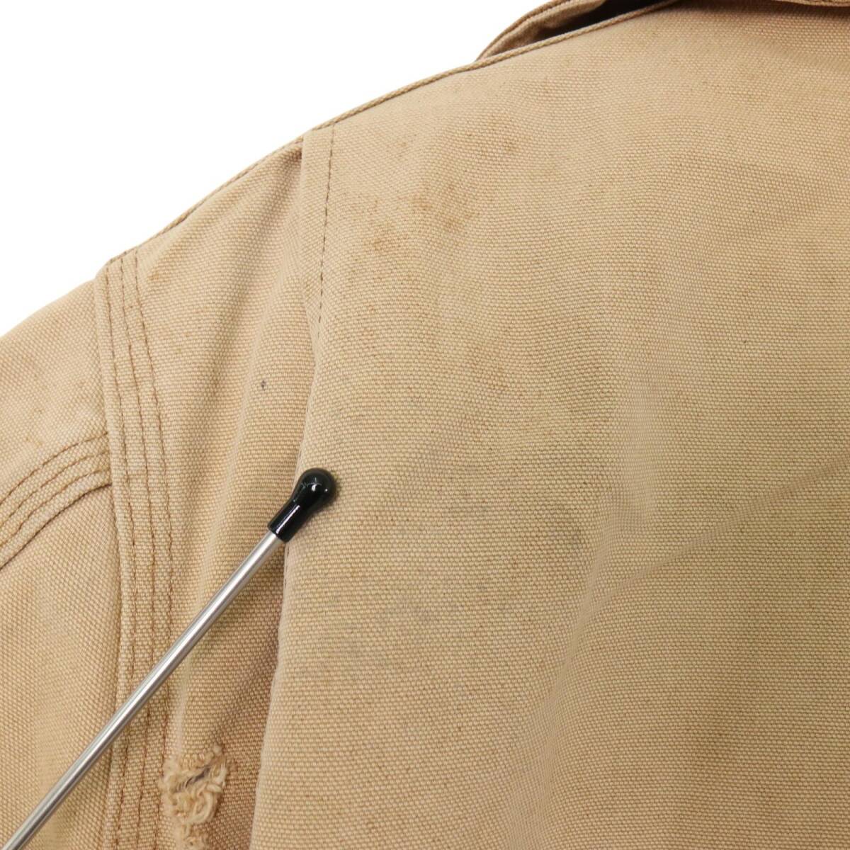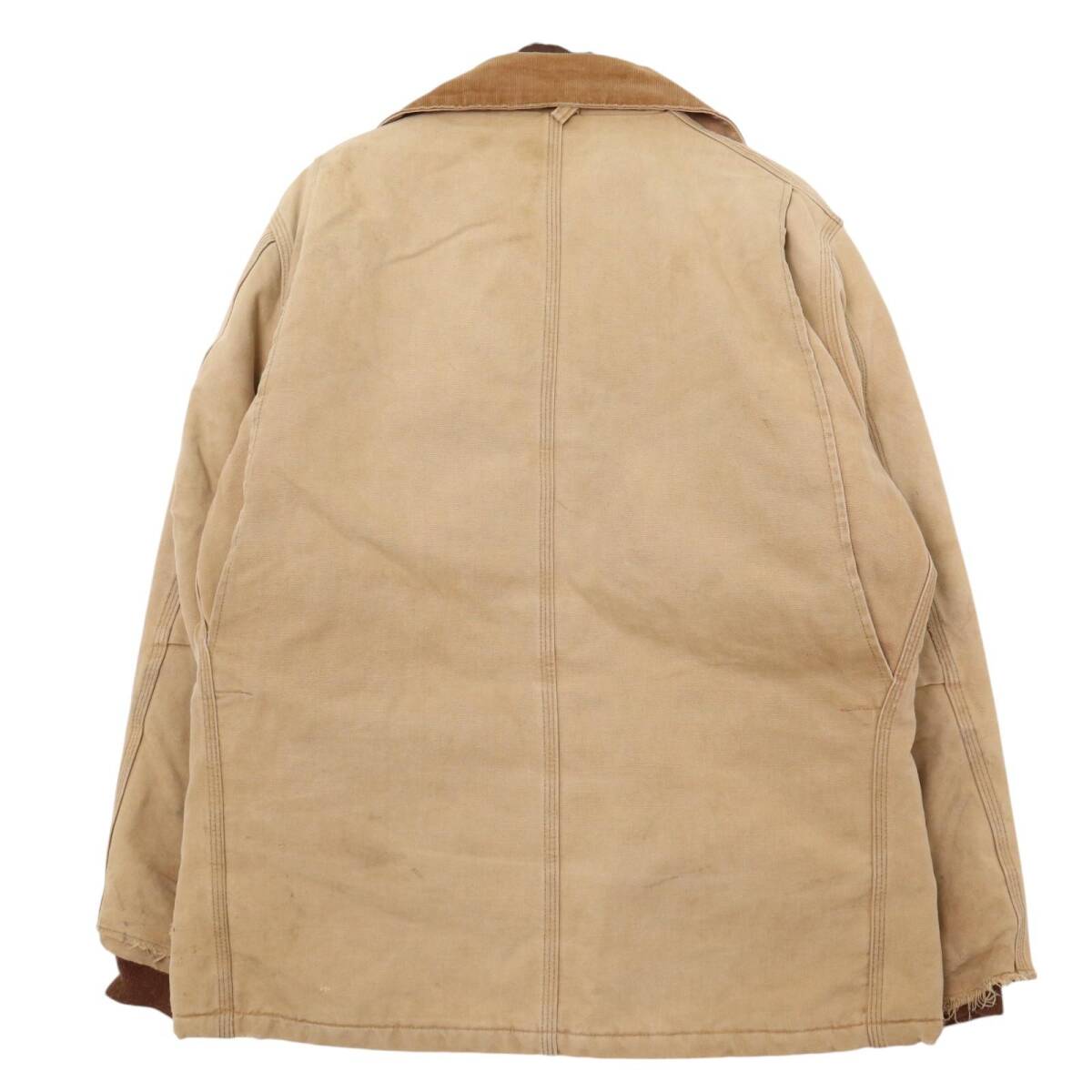 | 【商品管理番号】 A3230 【ブランド】 Carhartt/カーハート 【サイズ】 L相当 【実寸サイズ】 肩幅:約51cm 着丈:約77cm 身幅:約68cm 袖丈:約65cm 【主な素材】 表地 : コットン 裏地 : 13848 中綿 : 13897 【色】 ベージュ 【仕様】 裏地キルティング トラディショナルジャケット 【状態】 特記事項: 全体的に使用感がございます。着用に問題はございません。 | |||