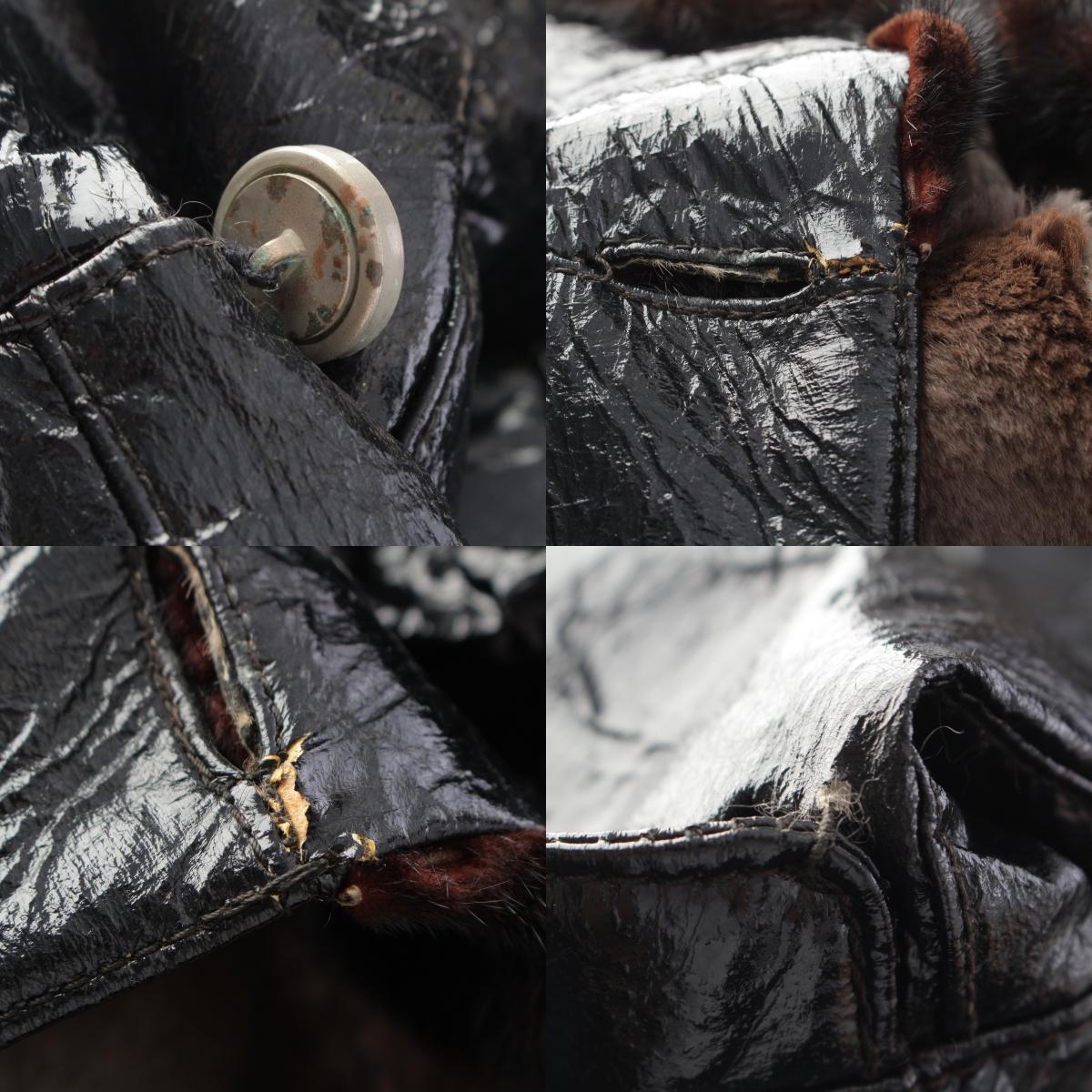表面、金具、ベルトに変色/擦れ/破れ/緑青、ベルトループに補修痕、裏地にファーの毛潰れ、剥がれ、保管臭のようなニオイ