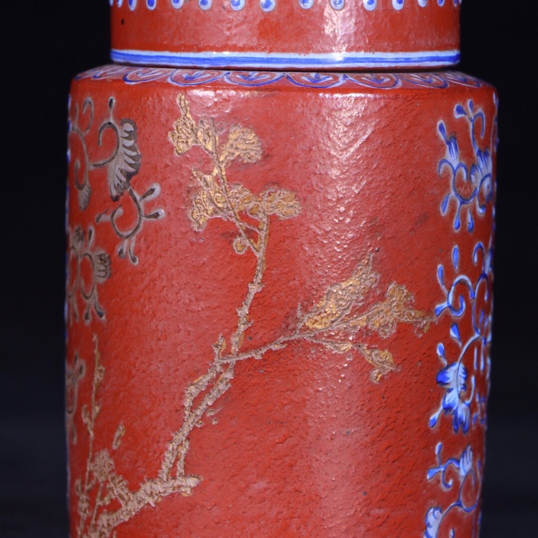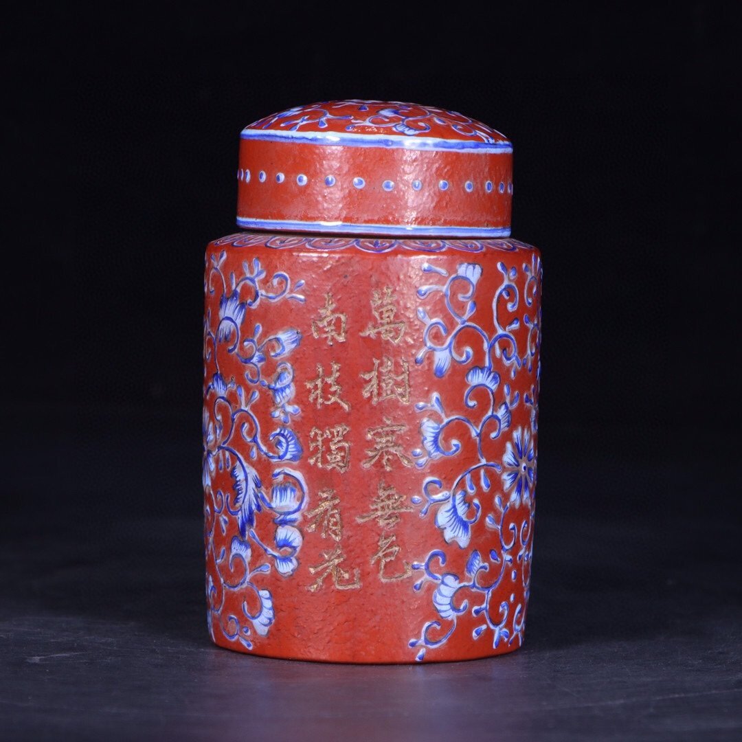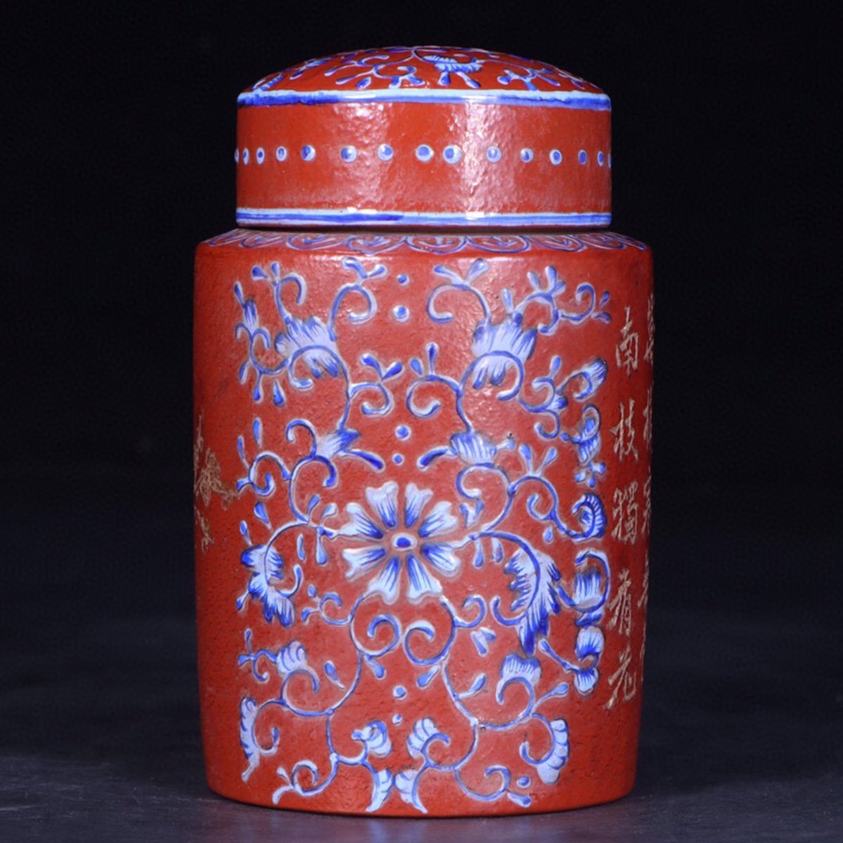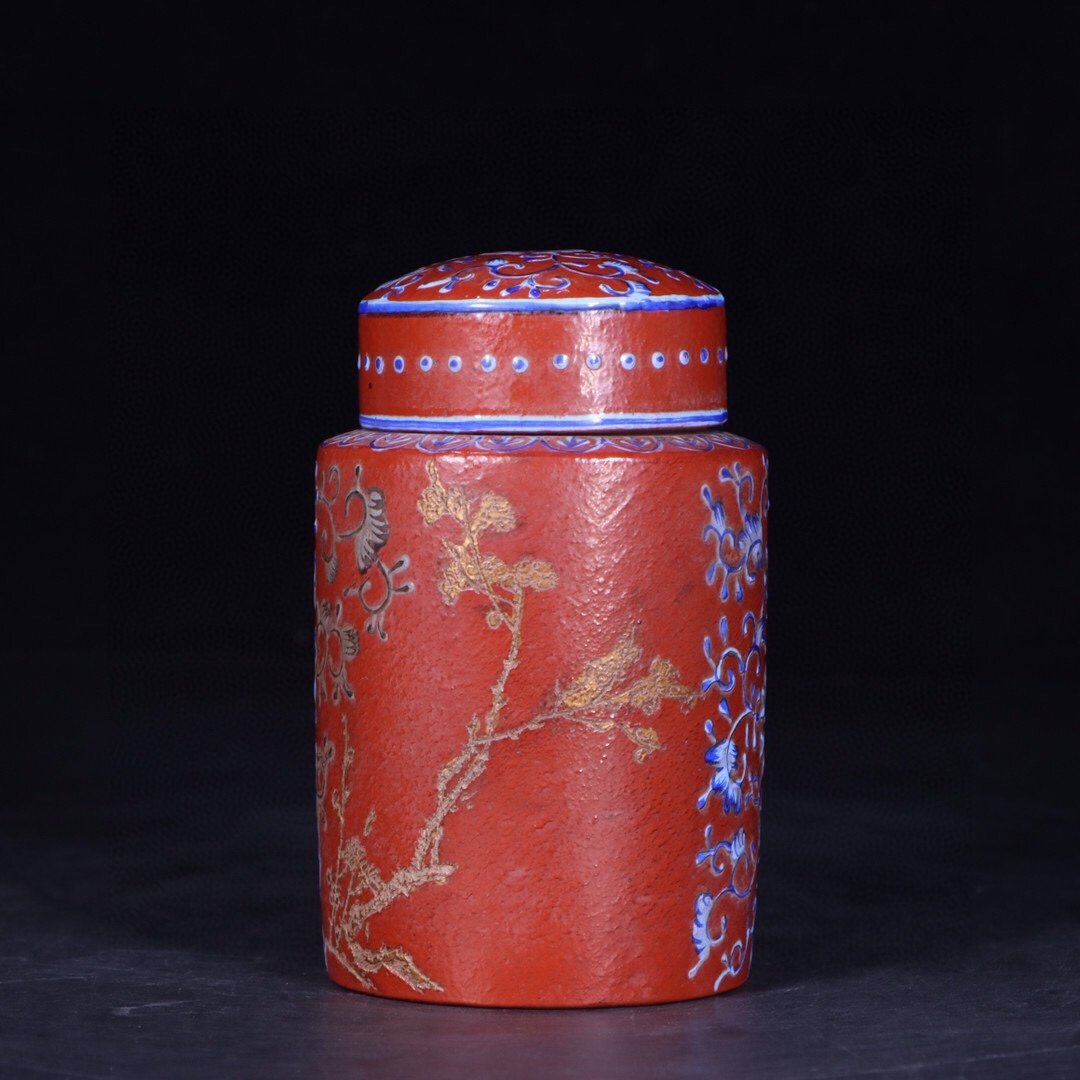 【安】清時代 龍紋底款 堆彫 施釉加彩描金花卉紋茶葉罐 茶入 茶筒 宜興紫砂 極細工 茶道 中国古美術 時代物 古董品 216 サイズ(約寸) |