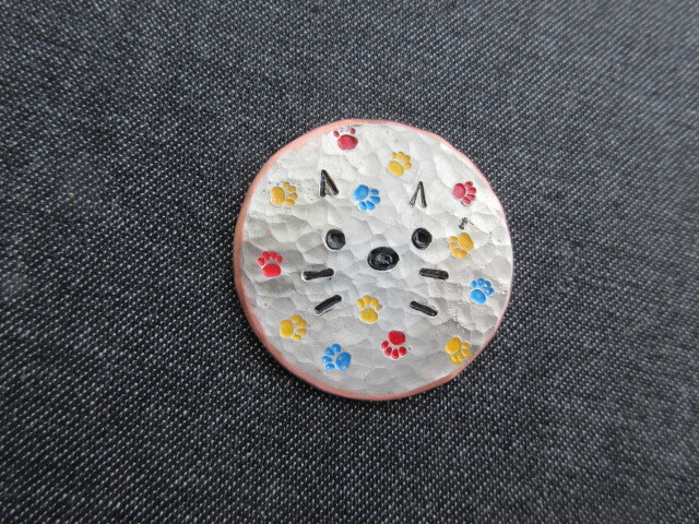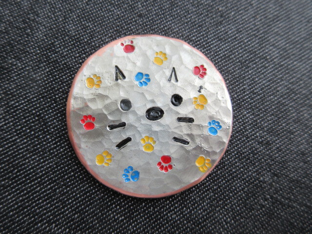 ハンドメイド ボールマーカー 錫掛け銅製 にゃんこ カラフル肉球 ハンドスタンプ名入れ無料