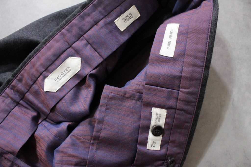生地はSUPER100'sのサキソニーウールで、色番920のダークグレー。