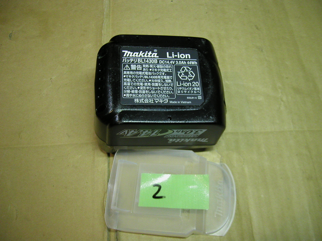BL1430Bが1個。使用極少ないセットからのばらしです。現状満充電で2回充電記録(専用チェッカで確認)。ハードに使うプロ工具の類からすれば十分美品(当方見解レベルは過去評価等参照)。一応画像で判断納得できる方。まぁ無いと思いますが、見解相違、誤記、見落とし、発送後の不具合含めNOクレームNOリターン厳守としますので心配な方はご辞退を(と言っても反して訴えてくる方は少なくともおてがる配送宅急便(補償が厚い)選択下さい)。自己紹介も出品条件。