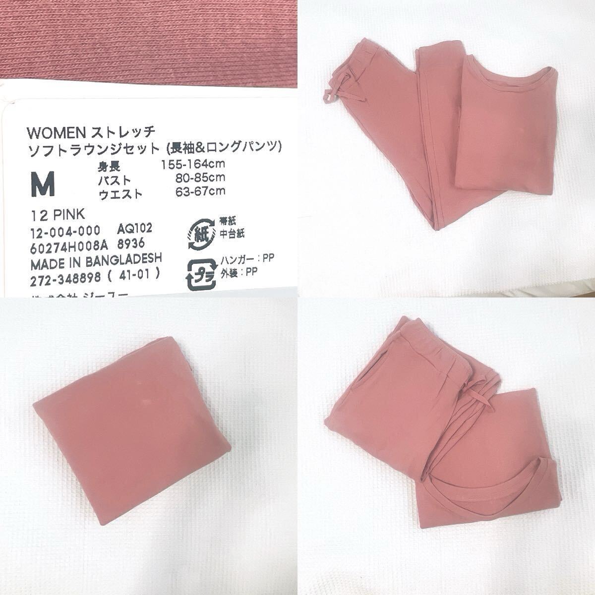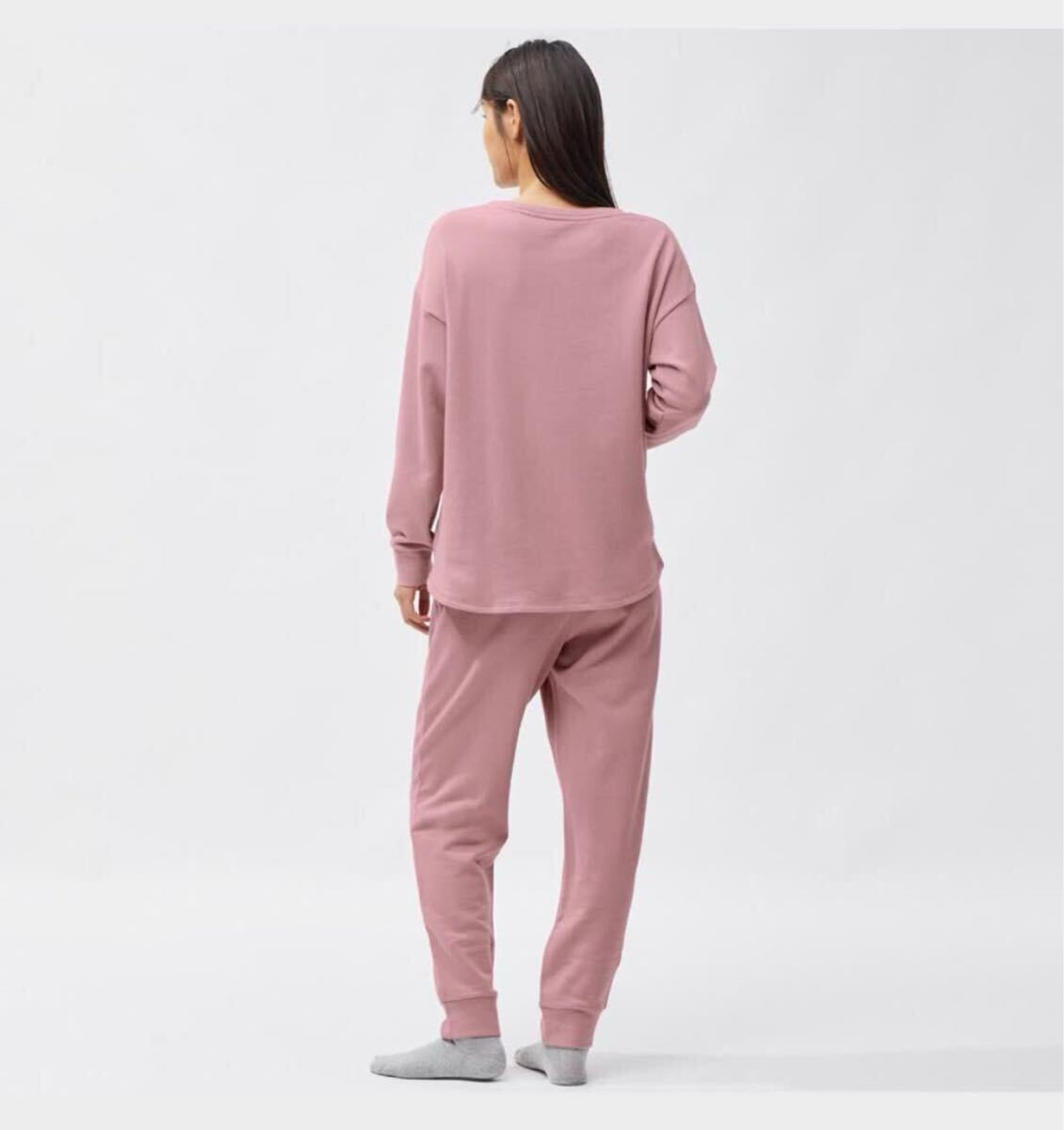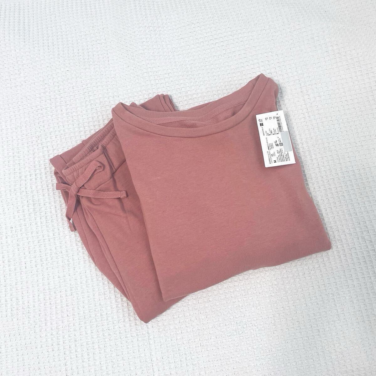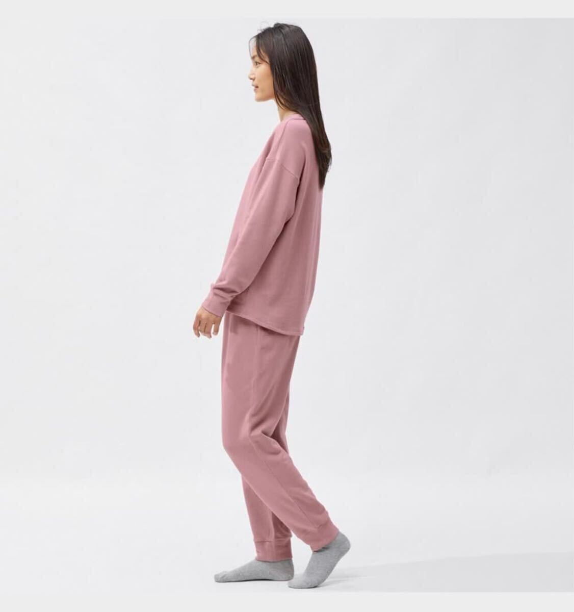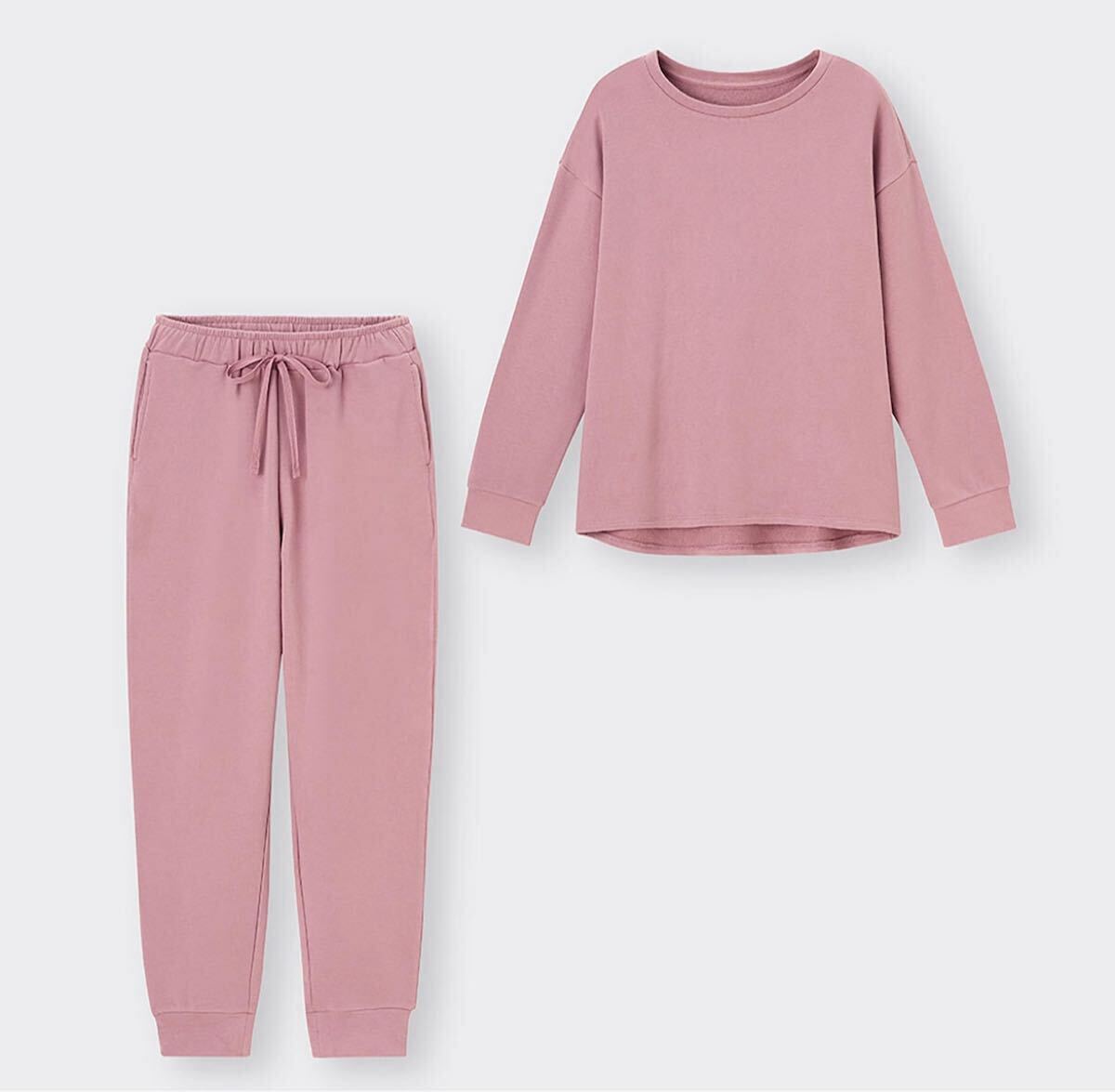 新品ジーユーGUストレッチ ソフトラウンジセット12:pinkピンクMサイズ上下セット長袖スウェット パンツ トレーナー ルームウエア パジャマ
