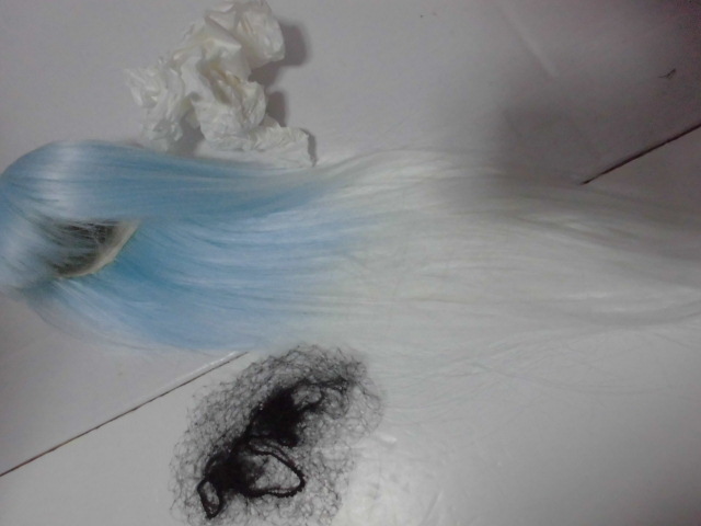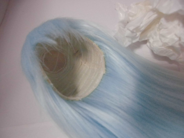 グラデーション、水色から白へのウィッグ、ドール用。サラサラしたタイプです。