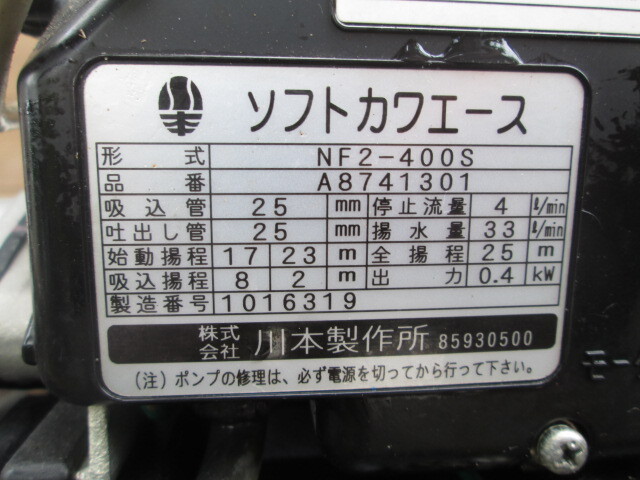 K-0  川本 浅井戸ポンプ カワエース NF2-400S 中古