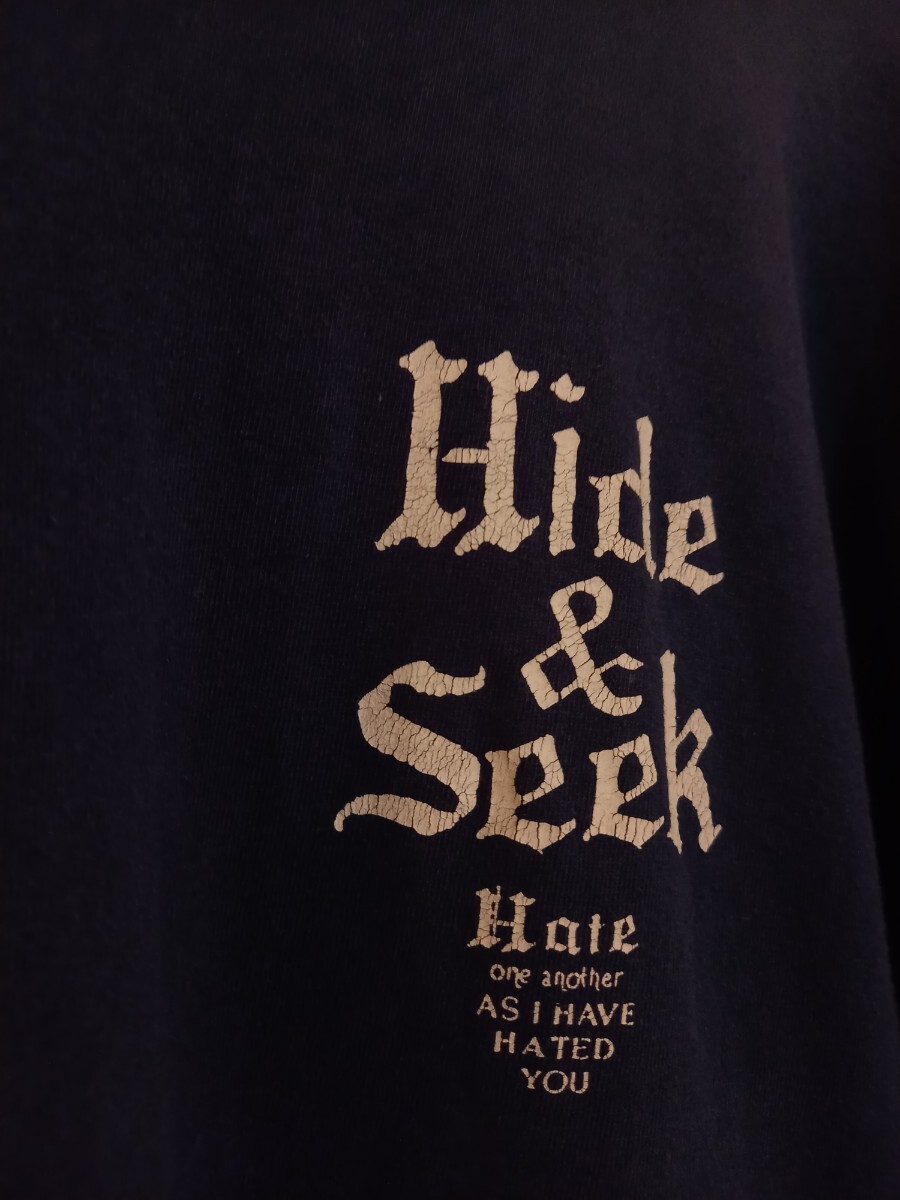 HIDE AND SEEK 初期 ハイドアンドシーク 長袖 ハイビスカス バックプリント 長袖 Tシャツ sizeL相当です。肩幅約56身幅約58着丈約68袖丈約64センチです。状態は多少の使用感などありますが、状態は良い方だと思います。必ず当方の自己紹介欄を見てから質問、入札、落札してください。ノークレームノーリターンでお願いします。