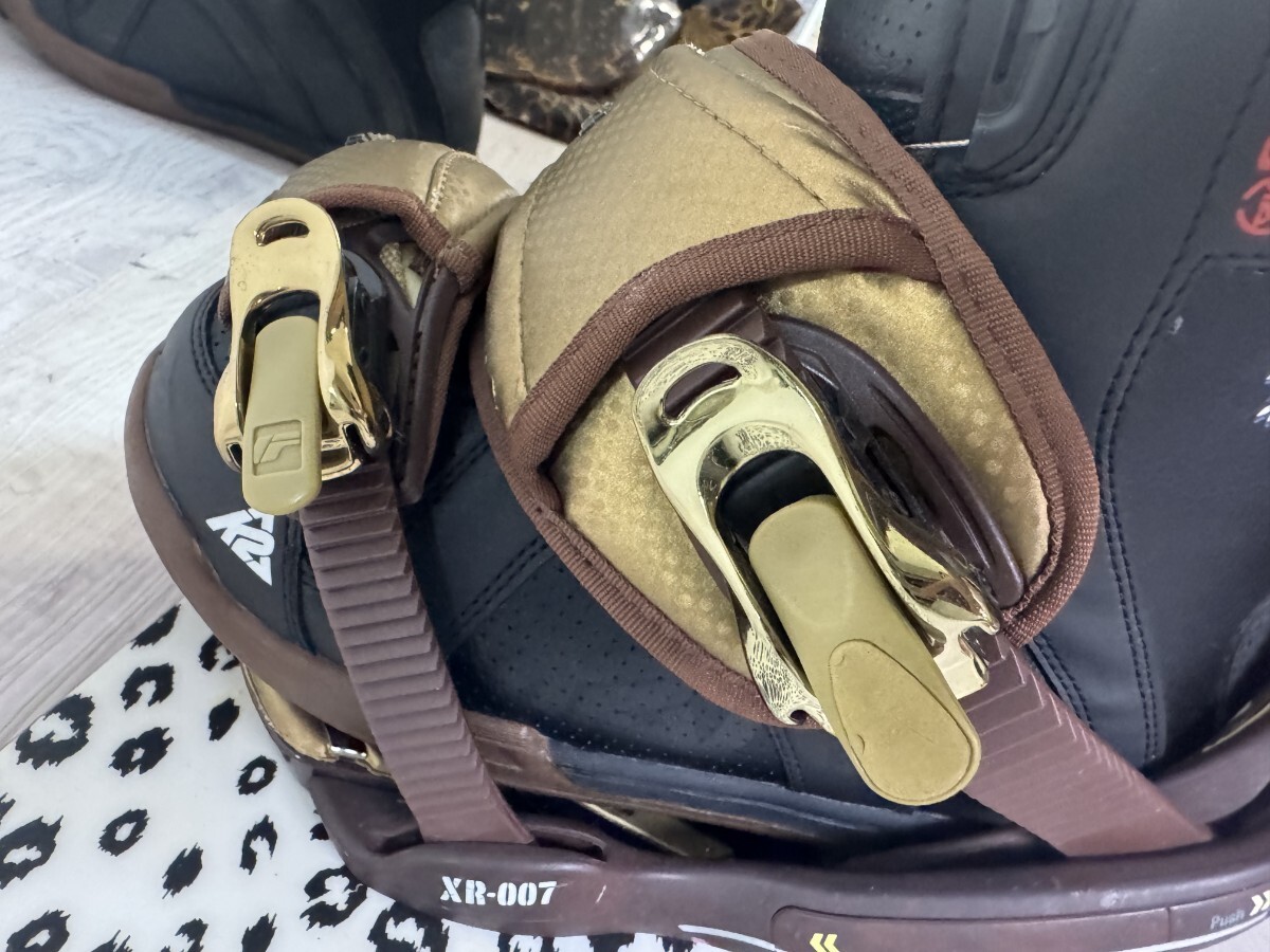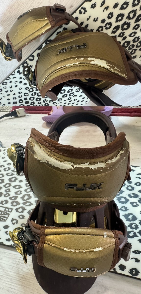 クリーニング済。ビンディング、ブーツ(25cm)付。ビンディングの布の部分の摩耗・スレあります。ビンディング経年劣化で、ボロいです。