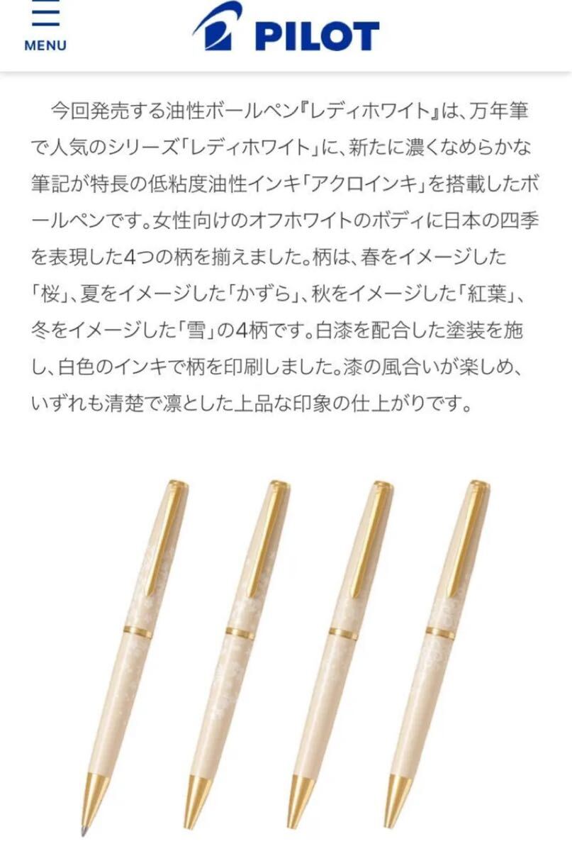 【廃番】【未使用品】パイロット レディホワイト ボールペン 《桜》BD-13SR-SKU 白漆配合塗装 PILOT 専用箱付
