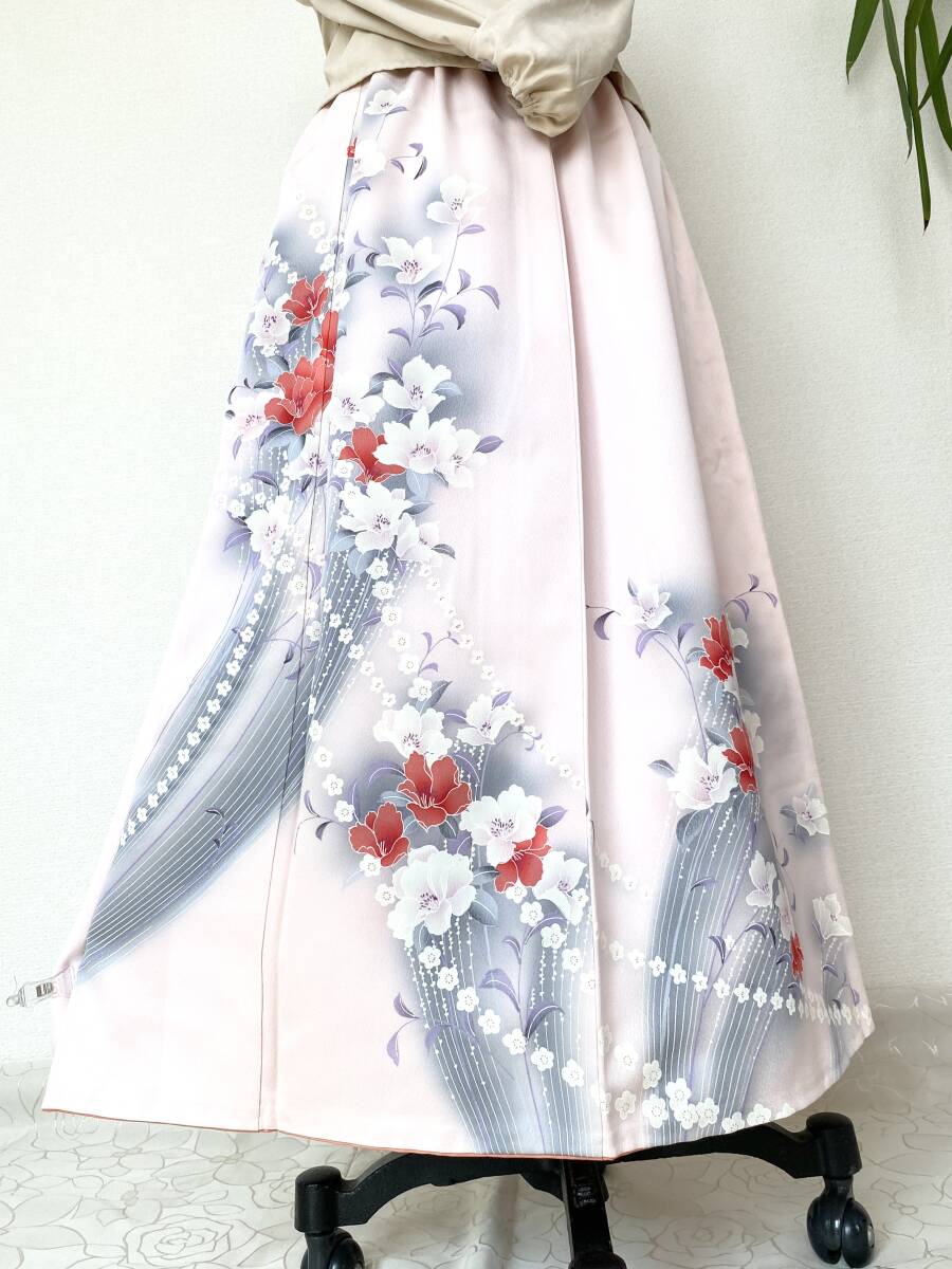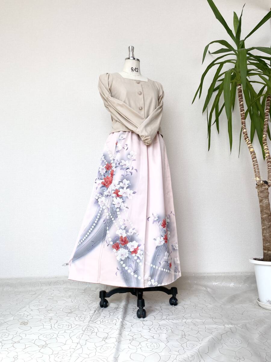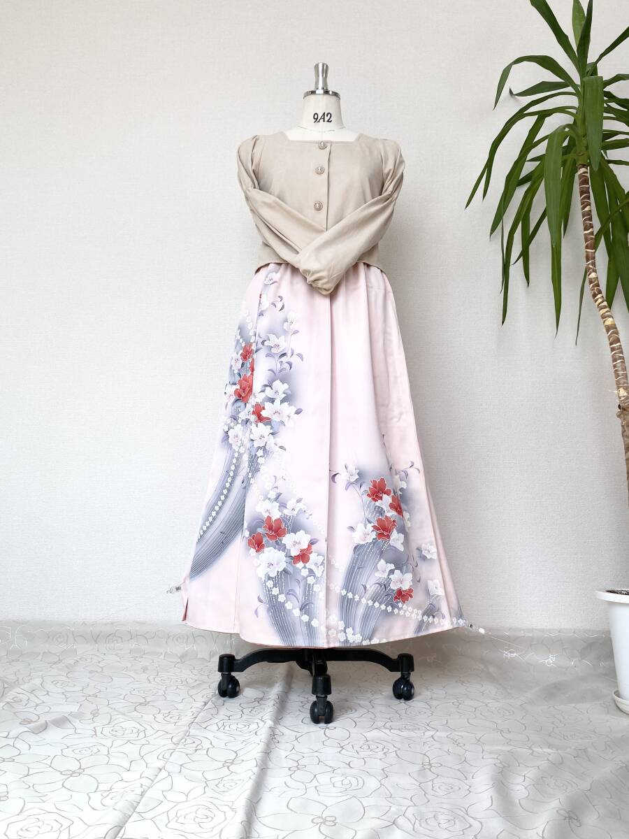 大人可愛いセレブ着物スカートフリーサイズ1点物着物リメイクウエストゴムロングスカートフリーサイズ送料込みハンドメイドNO.5636
