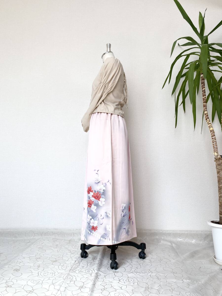 大人可愛いセレブ着物リメイクウエストゴムロングスカートフリーサイズ