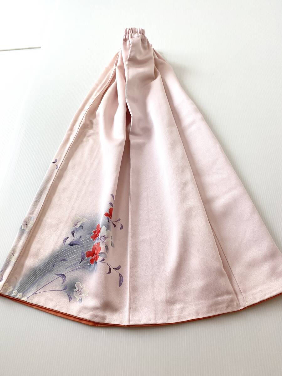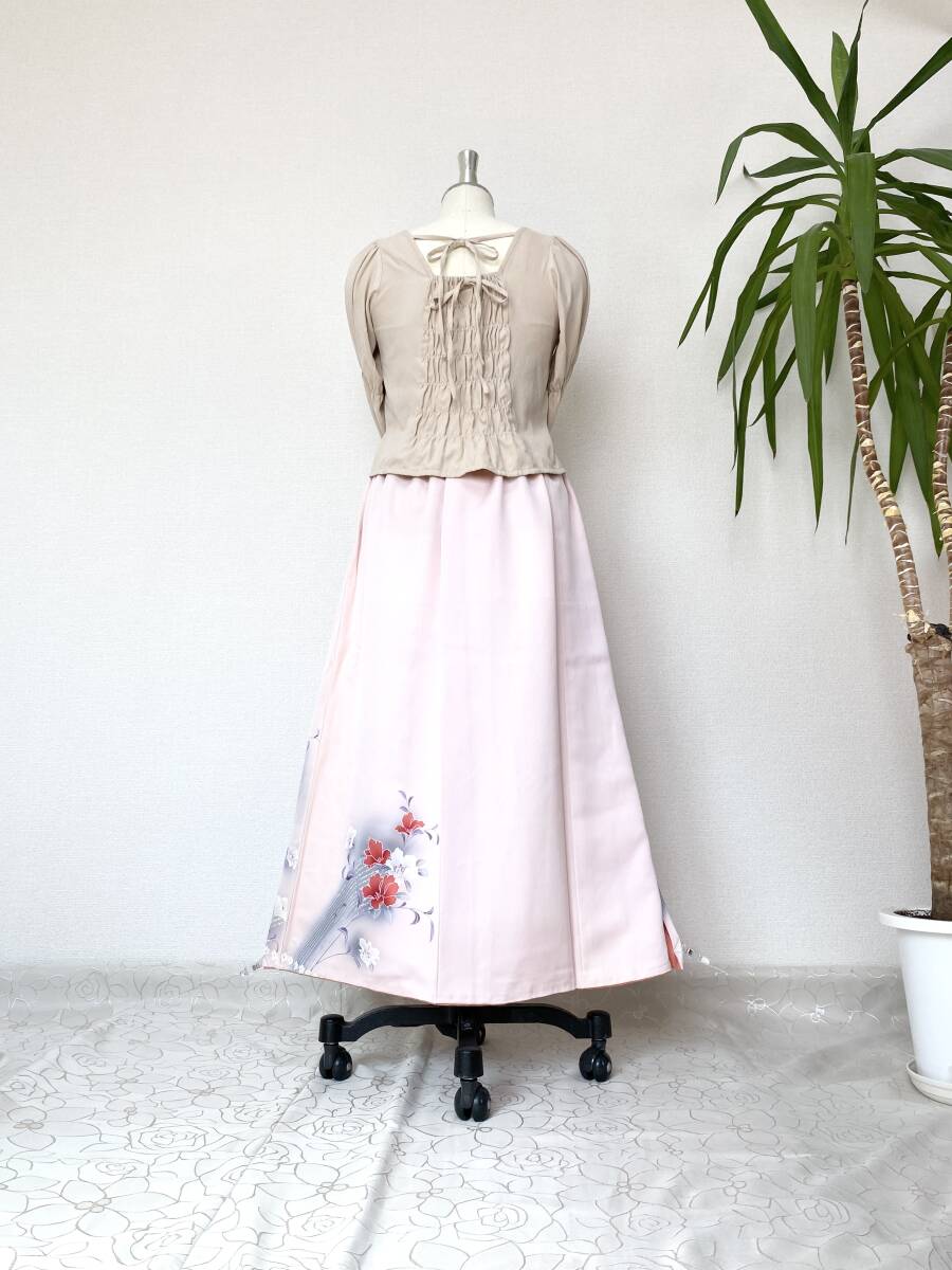 着物をリメイクして作製したウエストゴムロングドレススカートフリーサイズです