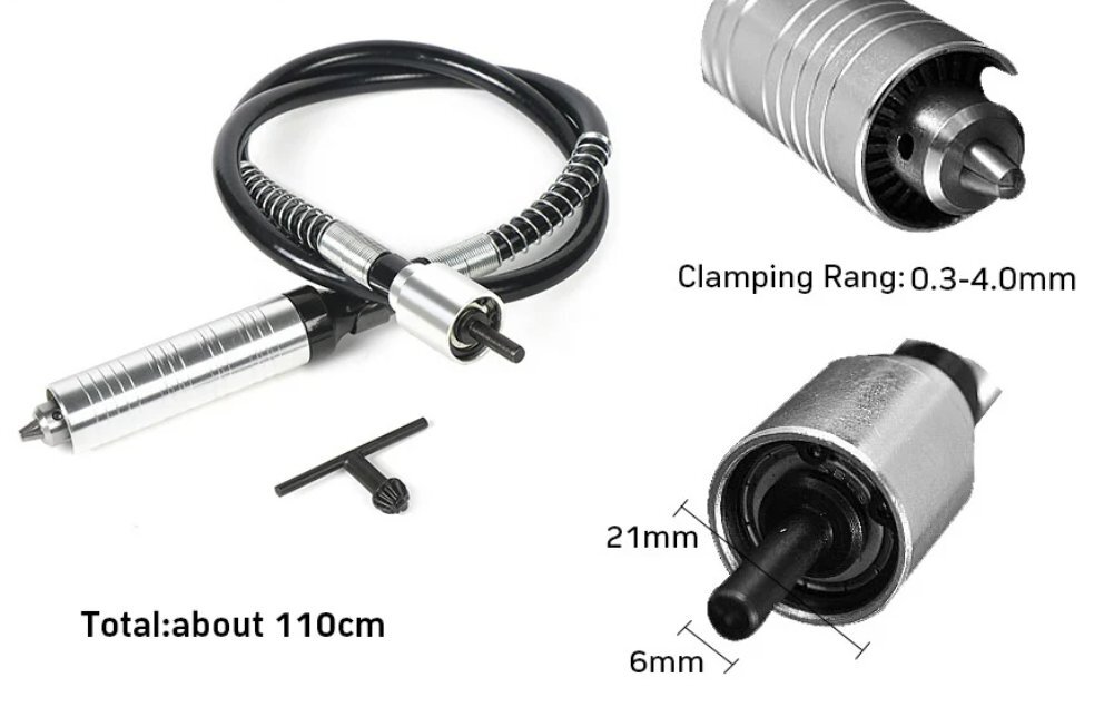 ・パワー系 ルーター グラインダ- 付属品 カーボンブラシ2個 チャックハンドル 電圧 :100V 50/60Hz 最大電流 :480W チャッキング :0.6~6.5mm 回転数 :5000~30000rpm 重量 :1.1kg 電源プラグ N極型 軸精度 :メーカーは数字を出していませんが、目視で振れは確認できません。 高精度であり一般作業には問題ないと考えられます。 音 :異音やノイズはありません。ほぼモーター音と心地良いベアリングの音だけです。 ・フレキシブルシャフト チャッキング :0.3~4.0mm シャフト長さ :110cm 付属品 :チャックハンドル ・使用にあたっては、自己責任でお願いします。 ・輸入品です。小傷などは少々あると思ってください。 |