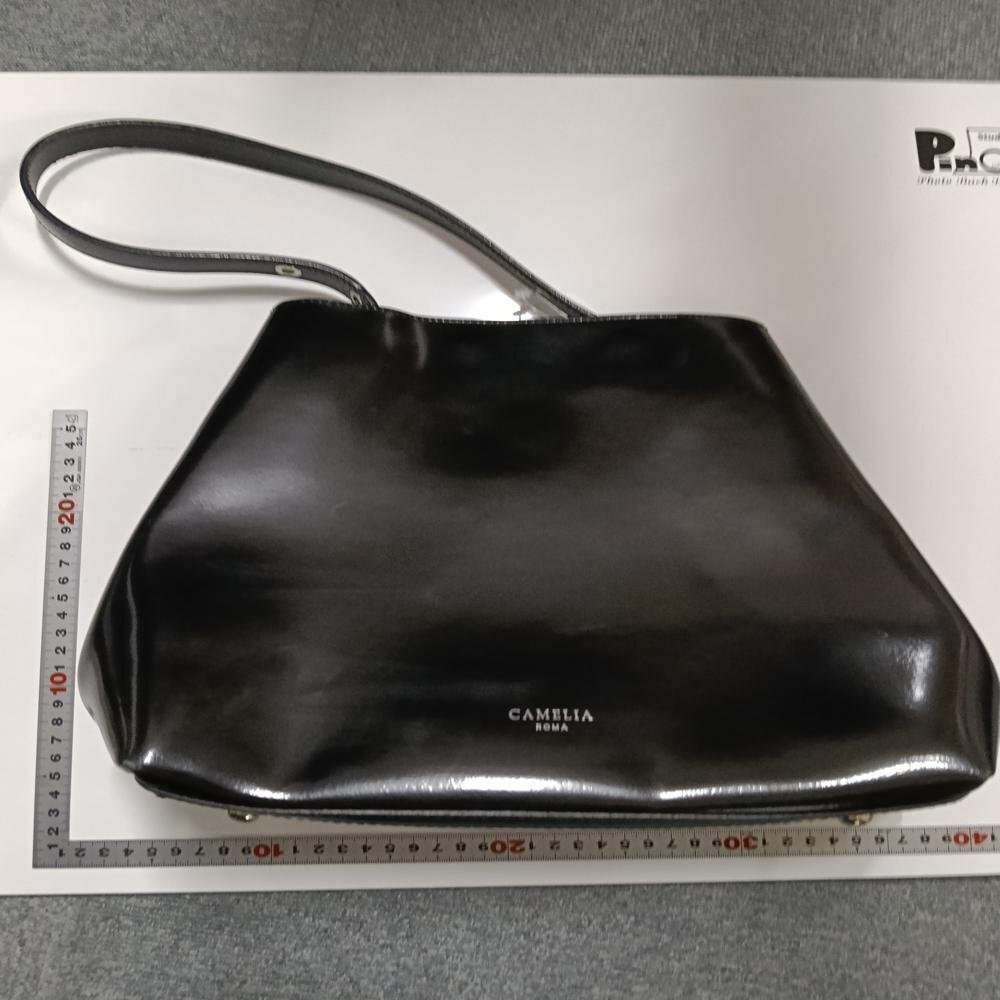 状態備考 : CAMELIA ROMAの黒エナメル調ハンドバッグ。艶やかな光沢が上品さを引き立て、装いを格上げします。日常使いからフォーマルまで幅広く対応。目立つ傷汚れなく、すぐに活躍する美品です。