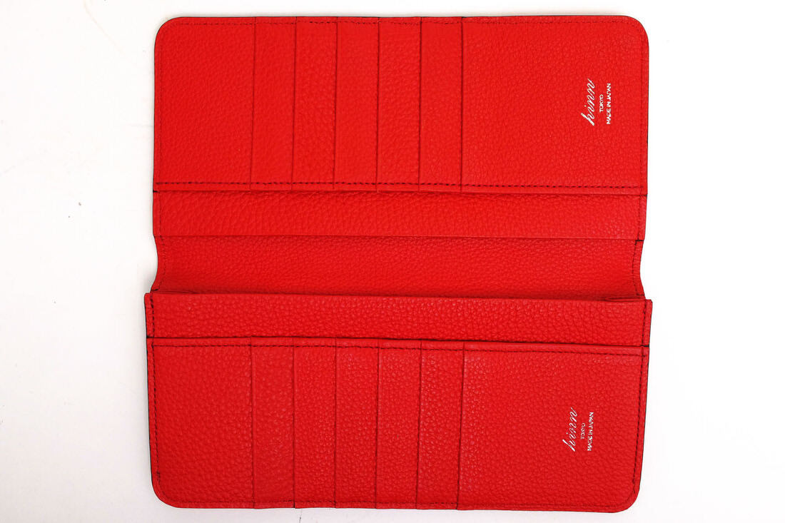 ◆ブランド名 hinn ◆サイズ詳細 横幅 約19cm、縦幅 約9.5cm、マチ 約1cm ◆仕様 カードポケット×12 お札入れ×1 フリーポケット×3 ◆特徴 小銭入れなし 札入れ シボ革 シュリンクレザー ユニセックス 男女兼用 ◆型番 Slim Long Wallet ◆新品時の希望小売価格 42000 ◆生産国 日本 ◆素材 上質な革 レザー ◆素材詳細 ぺリンガー社製シュランケンカーフ ◆色 レッド 赤 ◆商品状態 中古品-非常に良い |