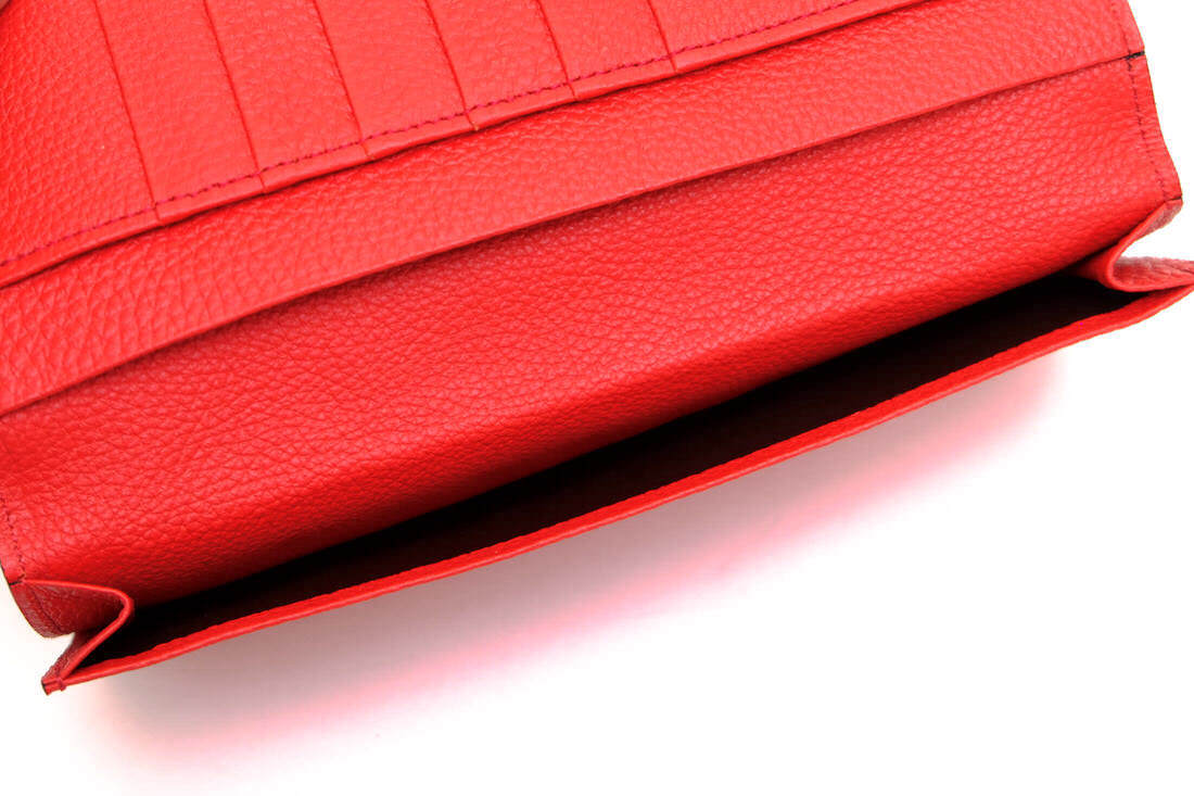 ラグジュアリーブランドでも使われる独ぺリンガー社製シュリンクレザーを、外側に1枚の革パーツで構成。無駄な装飾をそぎ落とした非常にシンプルなデザイン。 |