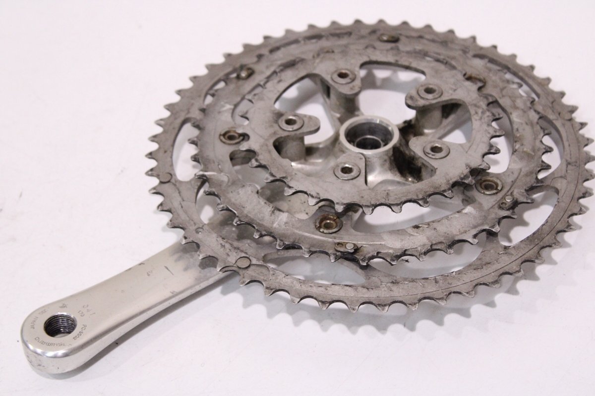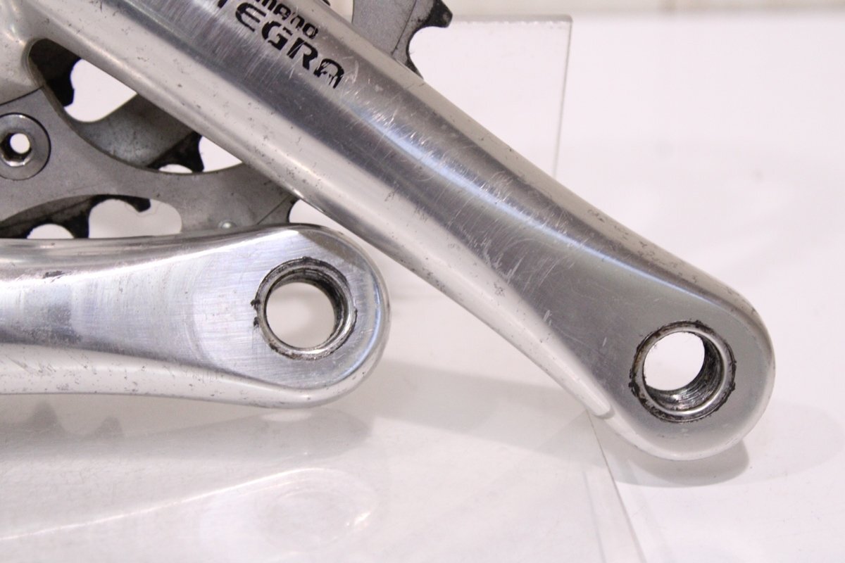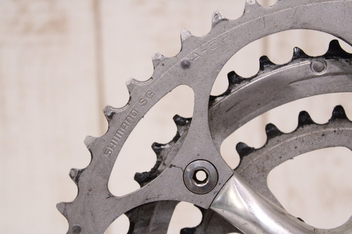 外観補足 | 汚れや傷等強めの使用感がございます。 クランクアームに目立つガリキズ、擦り傷などございます。 チェーンリングボルトに固着・ナメがございます。 ※詳しくは画像をご覧くださいませ。 |