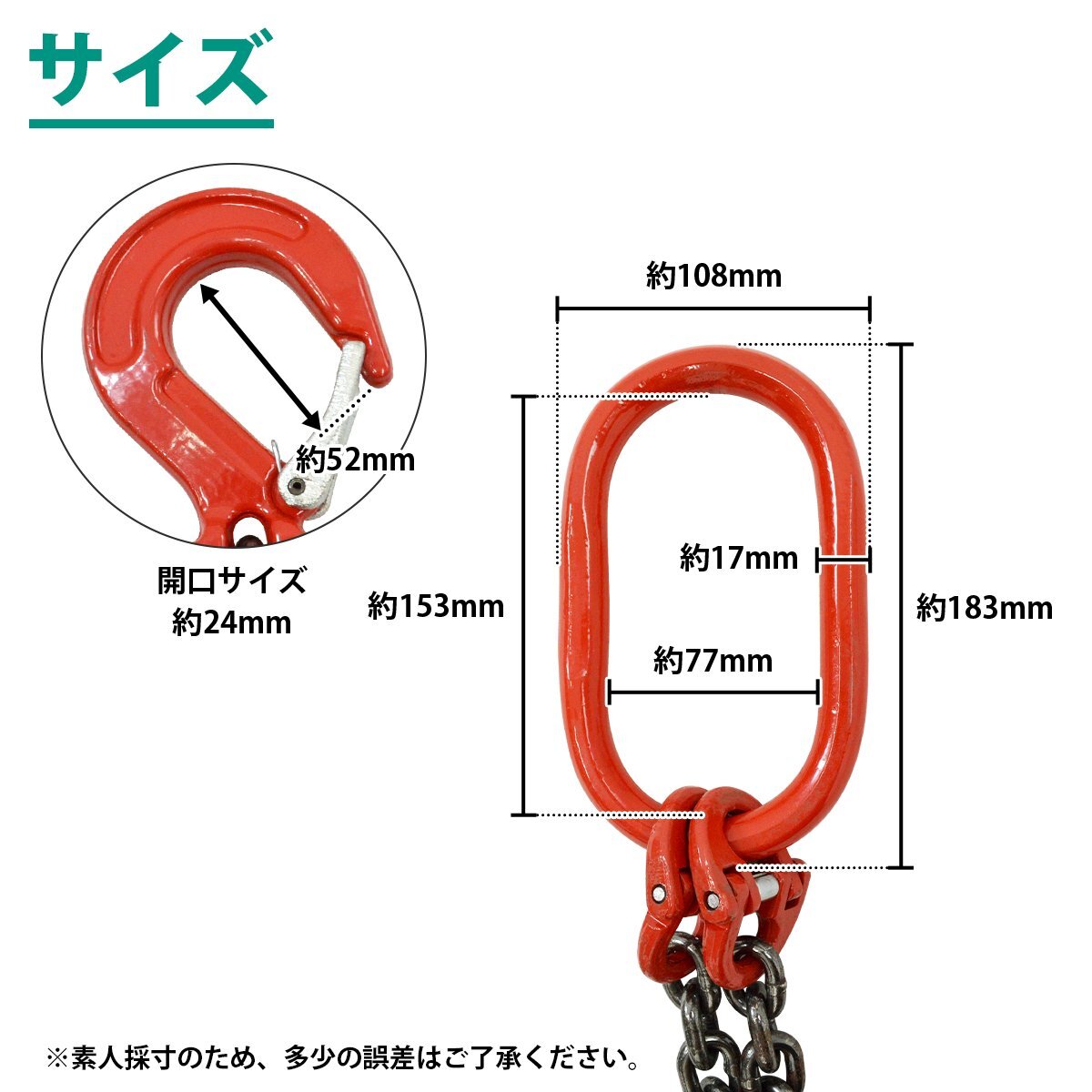 【送料無料】[ 2t 1.5M ]2本吊り チェーンスリング 吊り スリング チェーン フックタイプ リング付き 径8mm 長さ 1.5m 耐荷重 2t 2000kg