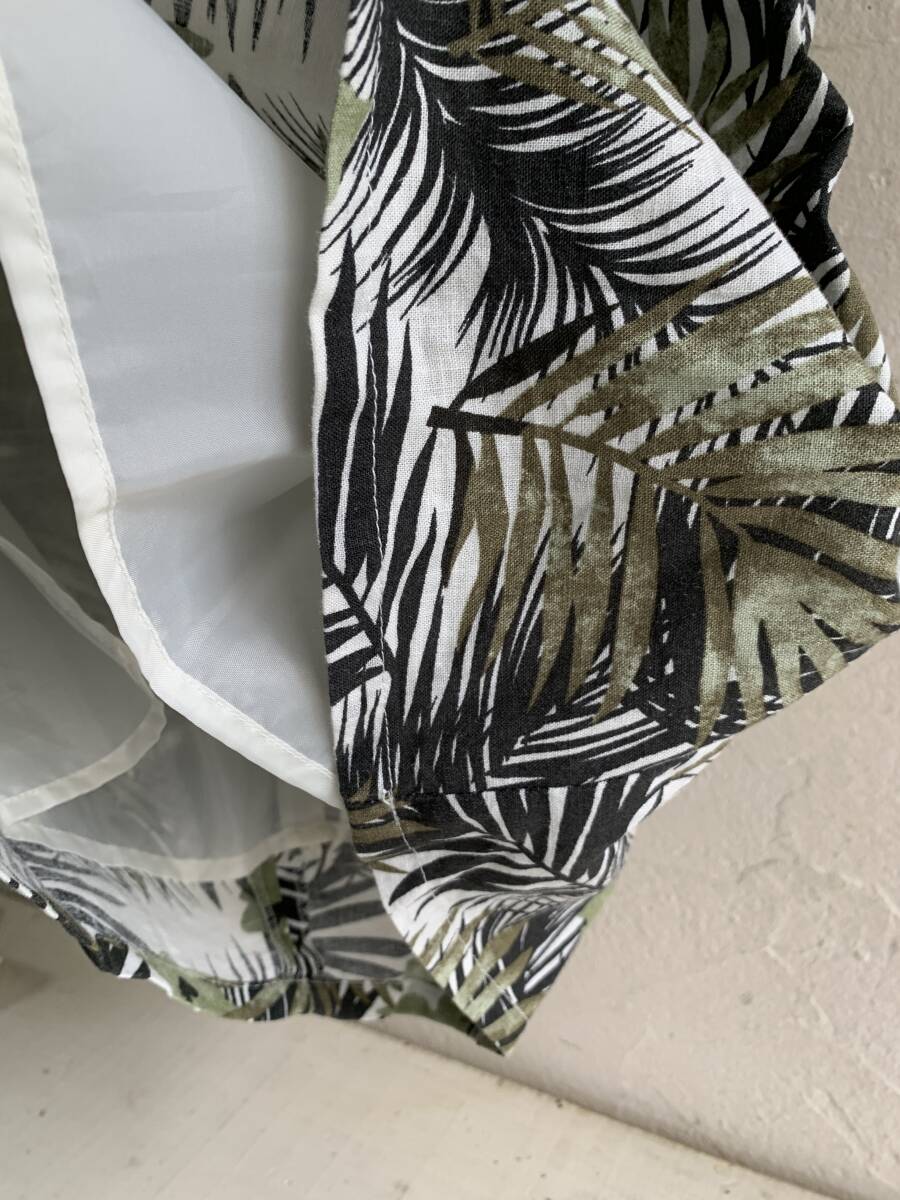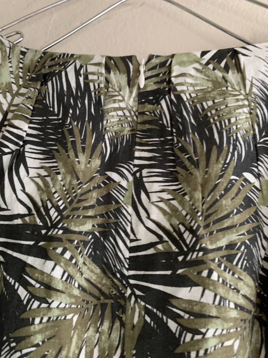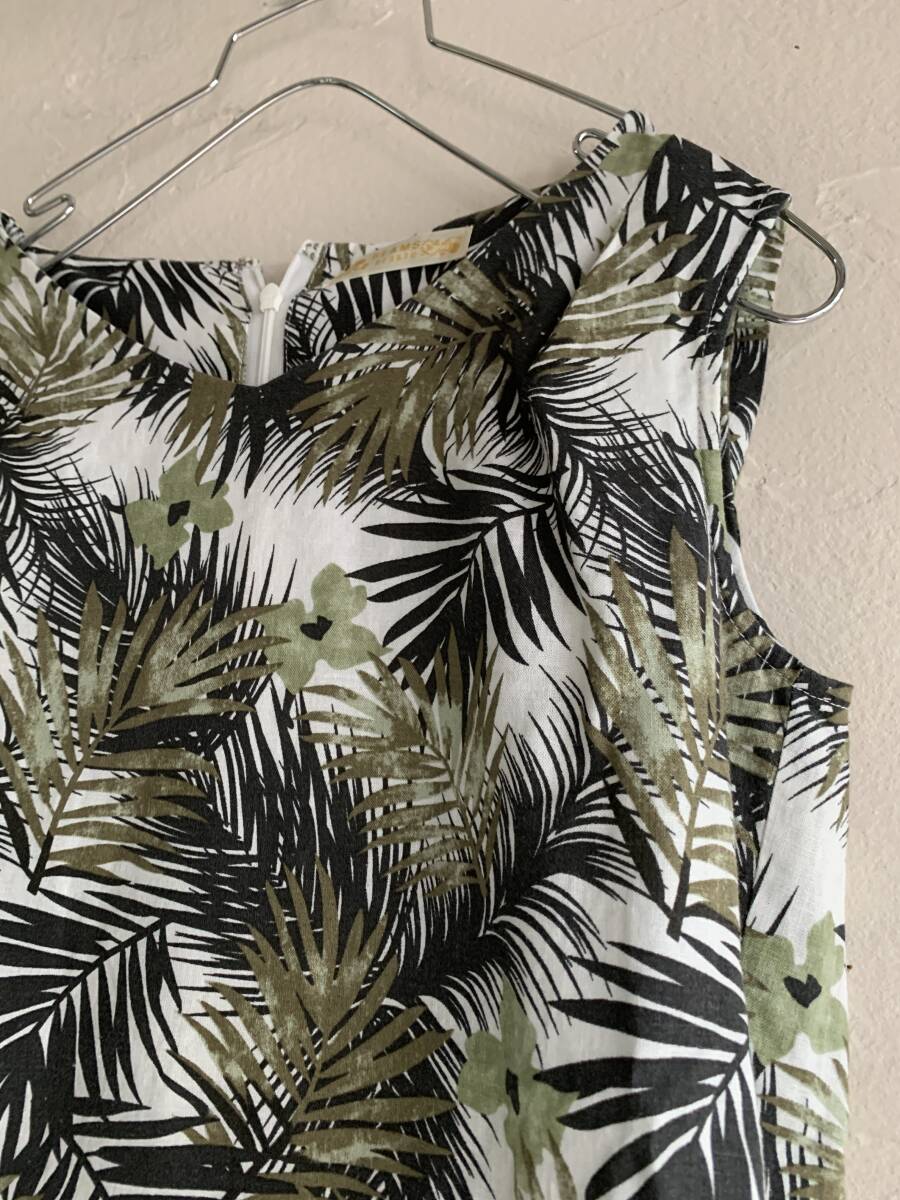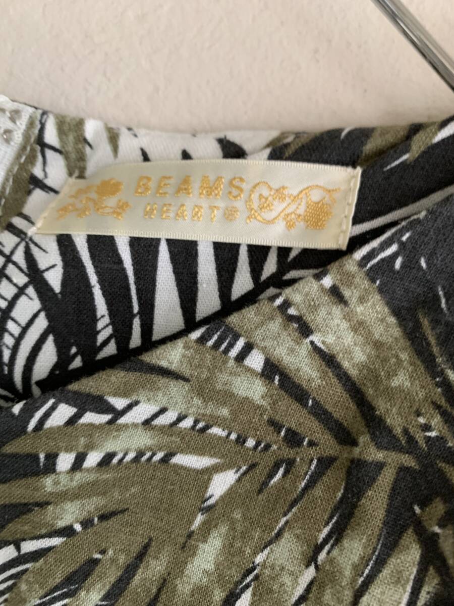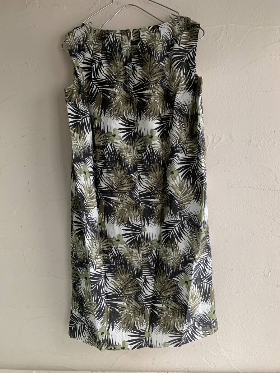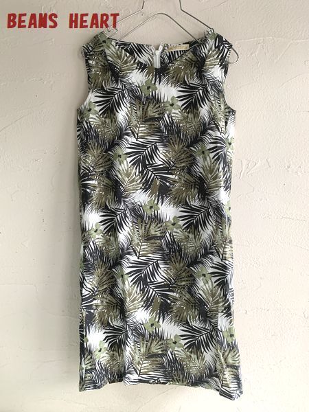 ◆S09◆BEAMS HEART ビームス ボタニカル柄 ワンピース 膝丈ワンピース 麻混 リネン混素材 手描きタッチ葉っぱ柄 植物絵柄 カーキ系