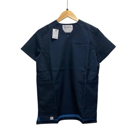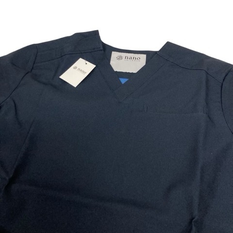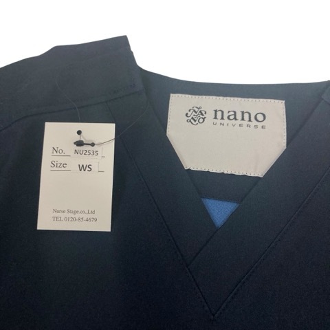 未使用品 ナノユニバース nano universe スクラブジャケット カットソー 半袖 Vネック 無地 NU2535 WS 紺 ネイビー レディース