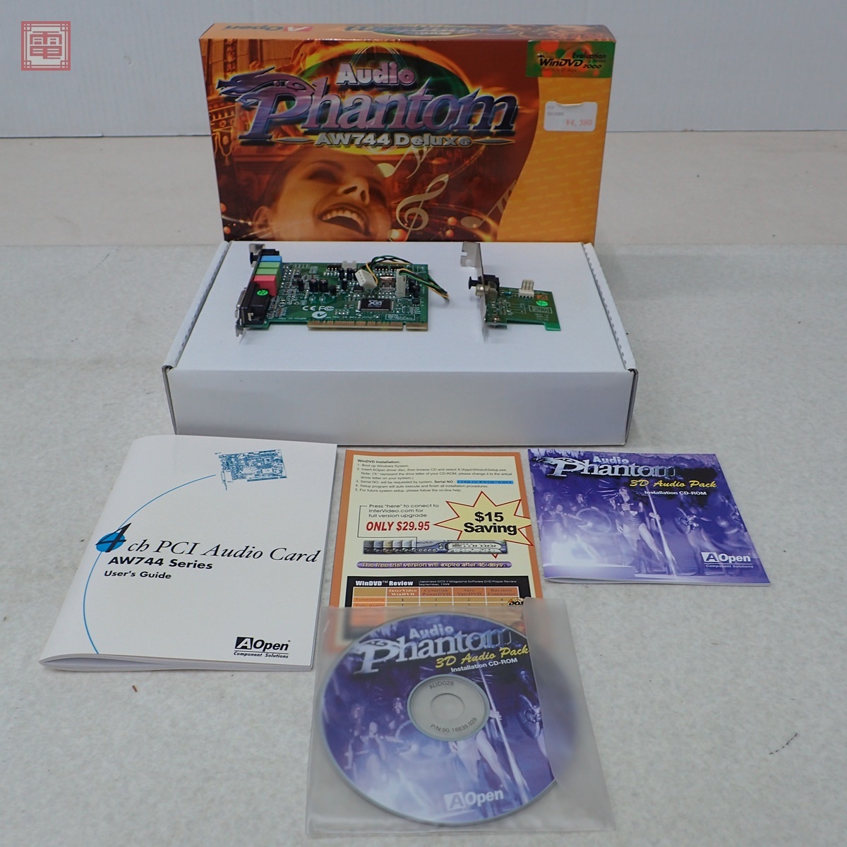 AOpen オーディオサウンドカード Audio Phantom AW744 Deluxe YAMAHA YMF744 PCI 箱説/CD付 ■こちらの商品は【動作チェック等】を一切行っていないため、どの様な不具合が生じましても当店では交換・返金・返品等の対応はできません。 ■ご理解ご納得いただける方のみご入札をお願いいたします。 ■AOpen オーディオサウンドカード の出品になります。 ■付属品は商品画像にあるものが全てです。 ■動作については未確認の商品になります。 ■細かい擦れキズ、汚れ等はあります。 ■ユーザーズガイド等に日本語のページがあります。 ■箱にキズ、汚れ、シールの貼り付け等があります。 ■写真のものが全てです。付属物の有無や状態については写真からご判断ください。 ■チェックに使用したモニターやチェック機器等は、特に表記がない限りは付属いたしません。 ■商品到着後、当店の保証期間中は、商品及び箱や取説、付属品などを1つでも廃棄や破損をしないようにお願い致します。廃棄や破損をした場合、商品に問題があった場合でも対応や返金などの対処ができなくなります。 | |||