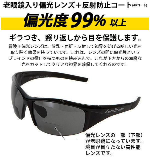 | 商品名 | 冒険王 ZSB201 バイフォーカル 老眼鏡入 サングラス |