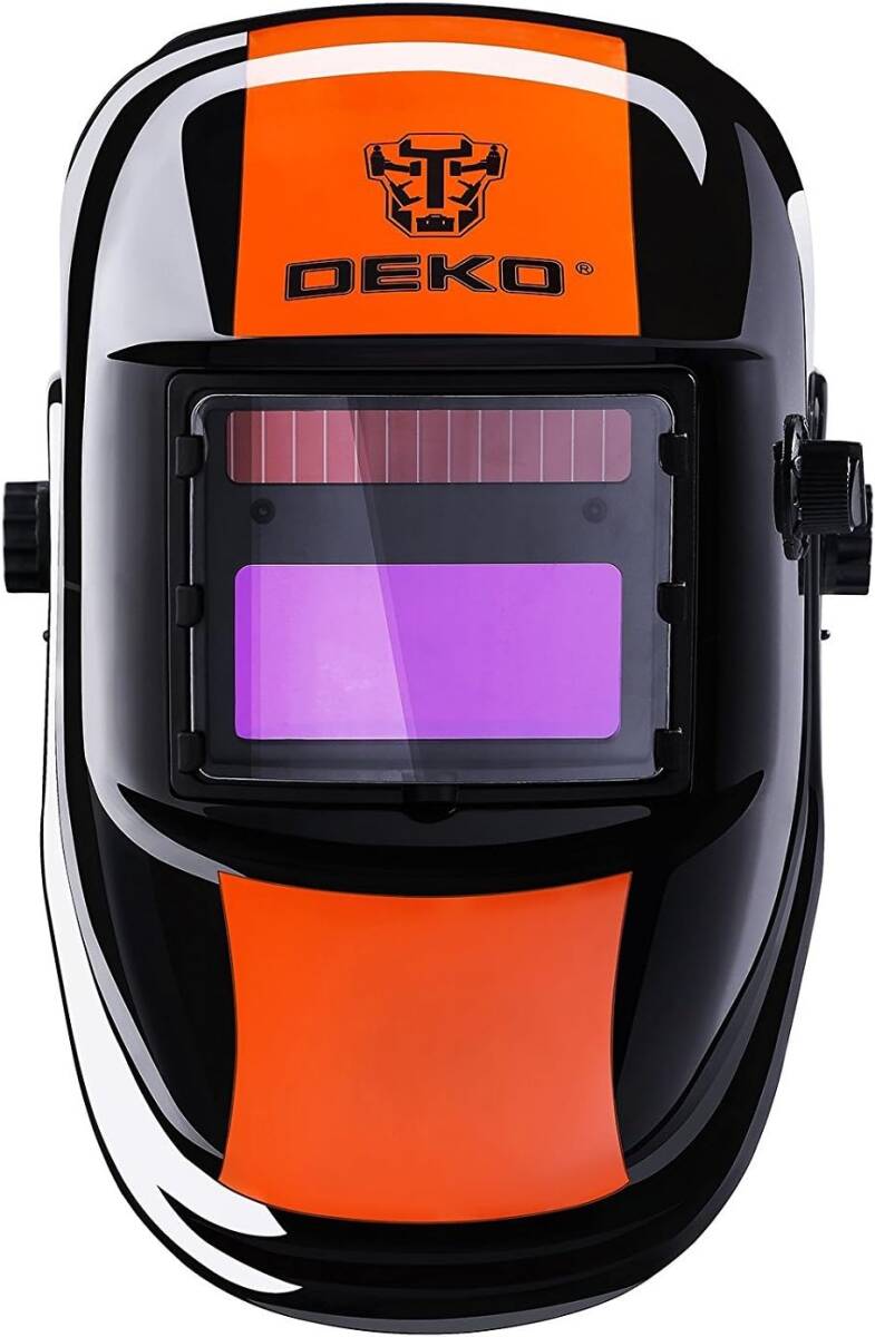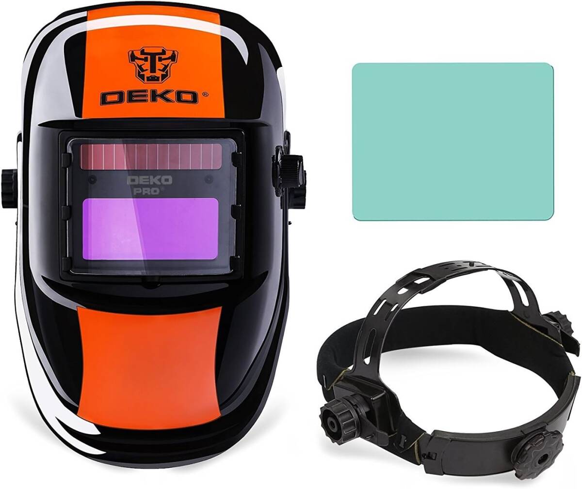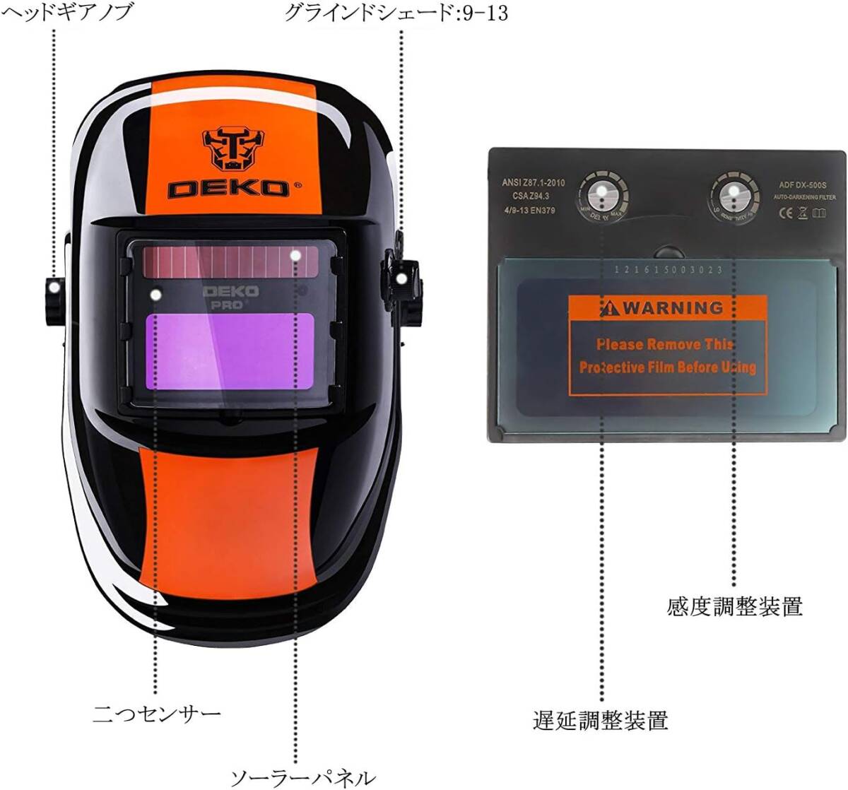 DEKOPRO 自動遮光溶接ヘルメット ソーラー充電式溶接マスク/溶接ヘルメット 調整可能なシャドー範囲4/9-13 遮光速度1/25000秒 MiG、TIG用 アーク溶接機 ブラック&オレンジ