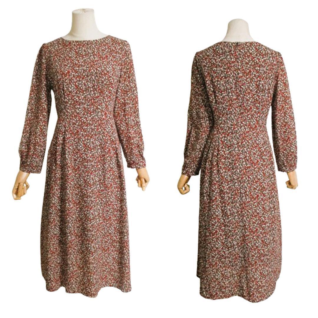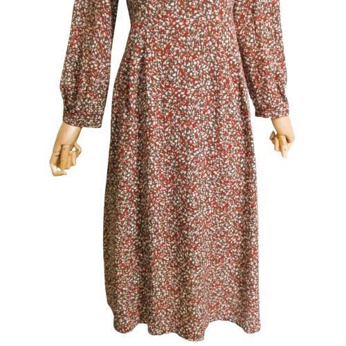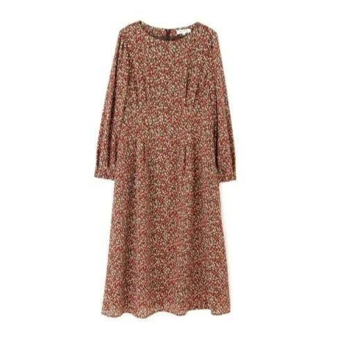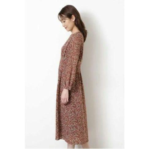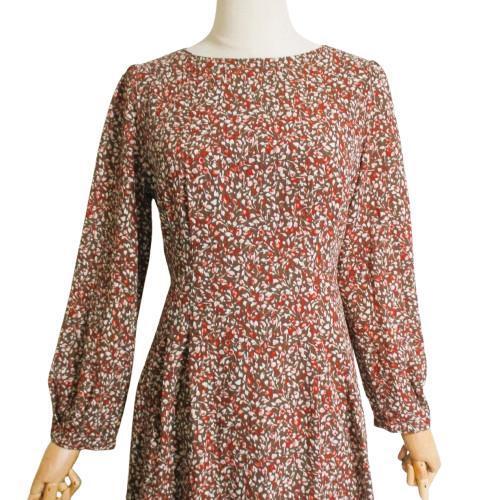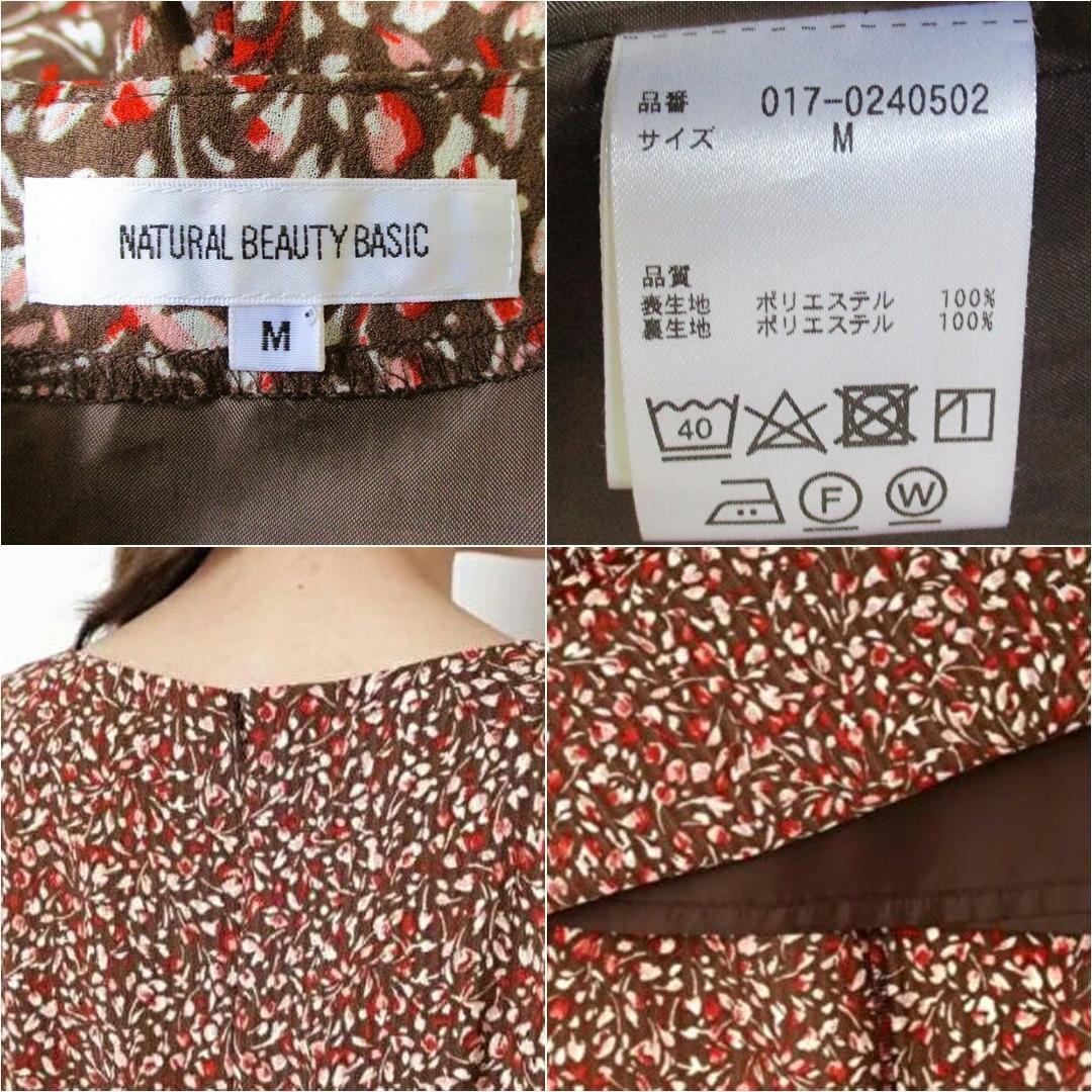【ナチュラルビューティベーシック】ワンピース 小花柄 ミディ丈 ブラウン系 M NATURAL BEATY BASIC フラワープリント 匿名発送