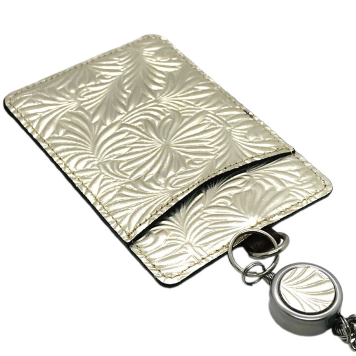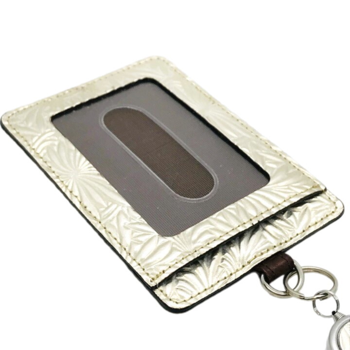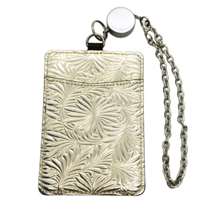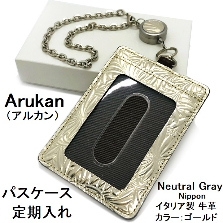 ■未使用■ARUKAN アルカン レザー 型押し パスケース 定期入れ カードケース ゴールド メンズ レディース レザー Neutral Gray Nippon L12
