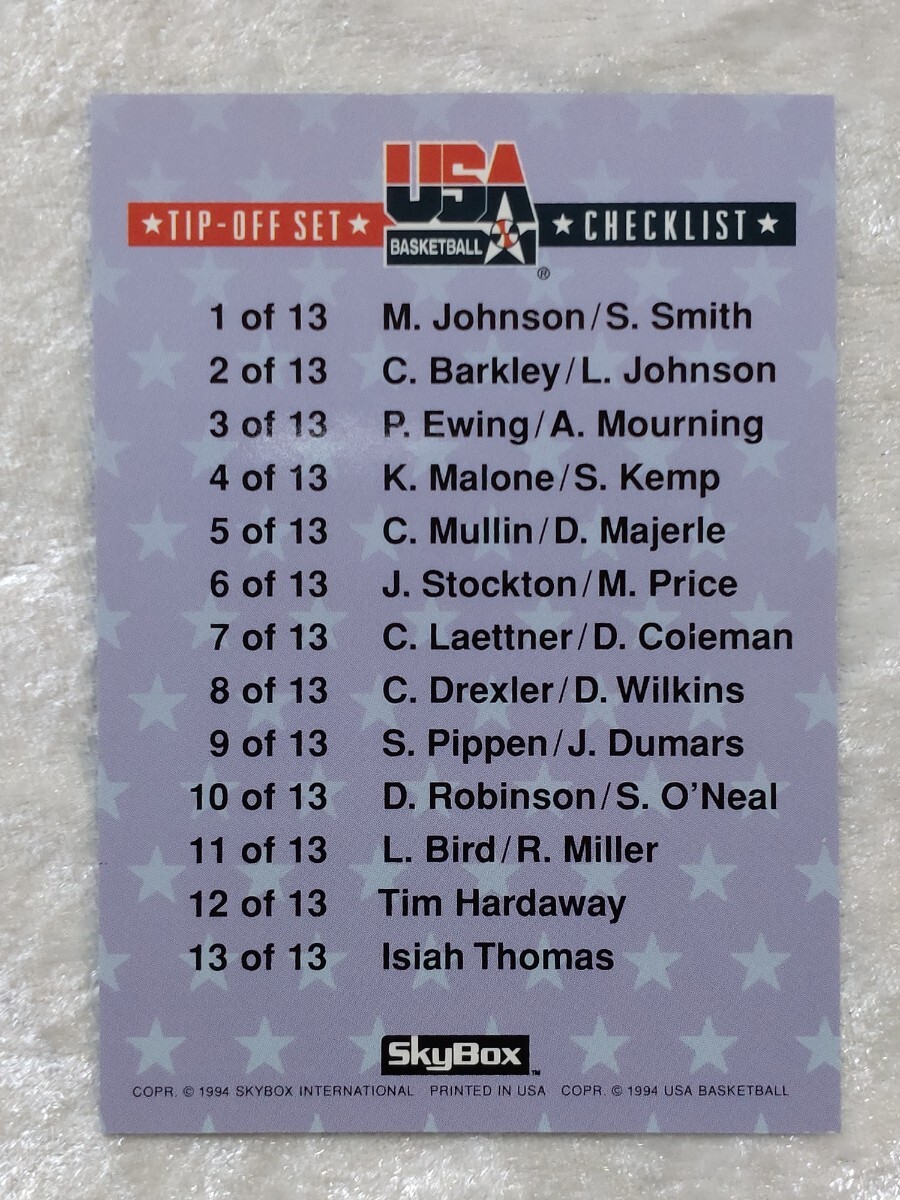 1993-94 SkyBox バスケットボールカードの「USA Tip-Off」インサートカード(交換カード)を送って郵送されてきたカードのセットです。