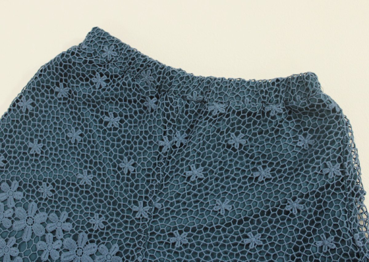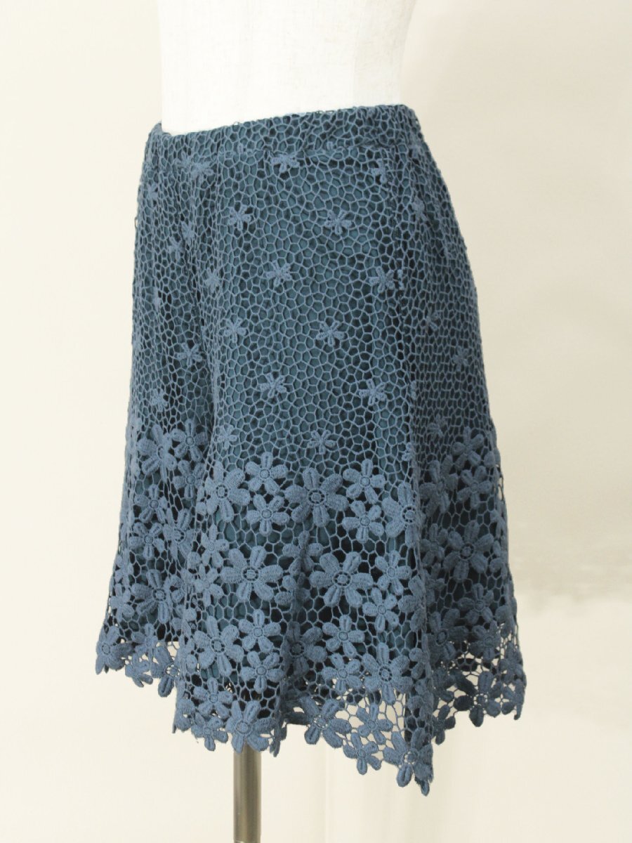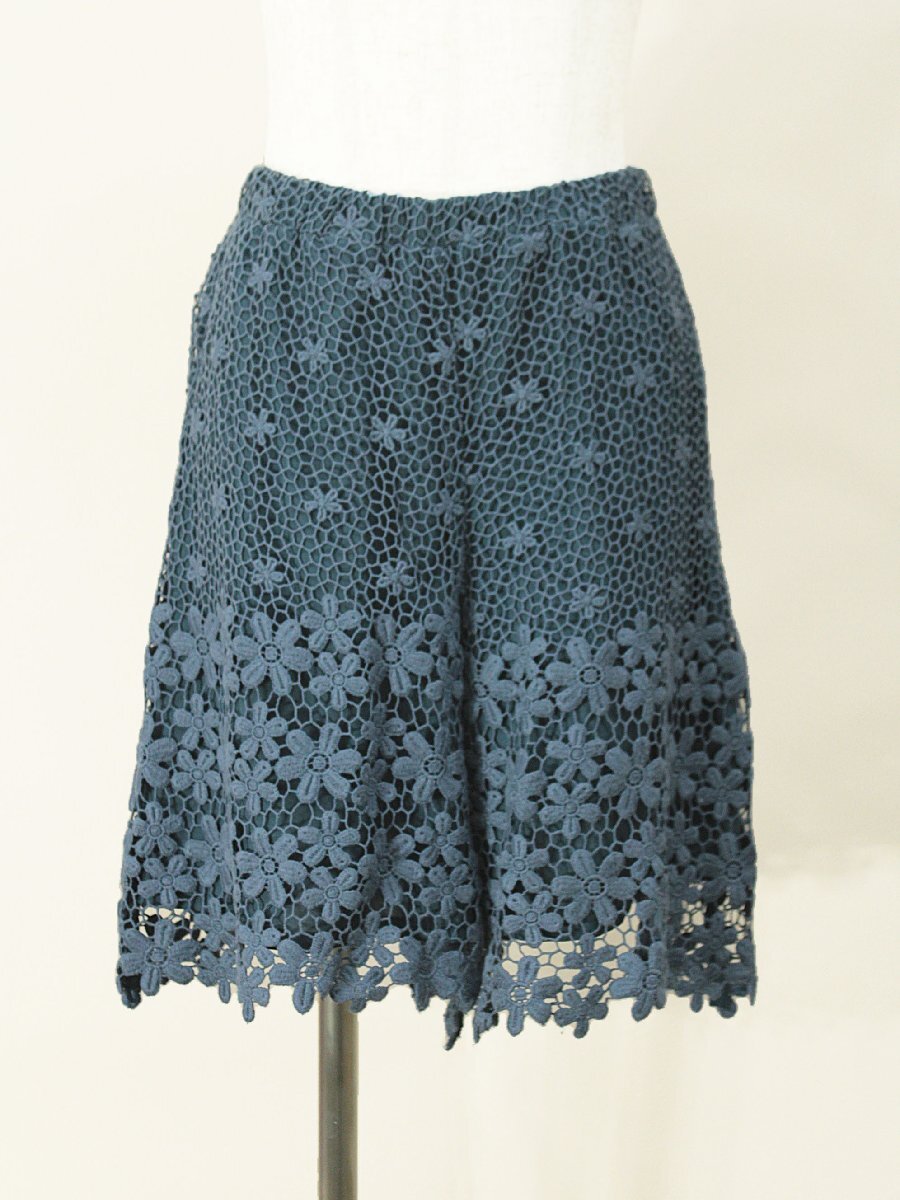 美品 ホコモモラ コットンレースハーフキュロットパンツ定価1.1円紺40 an104