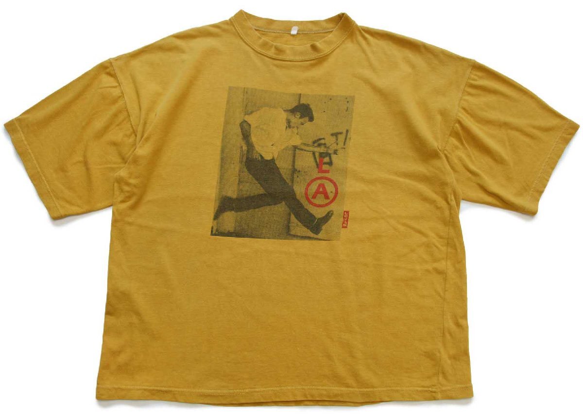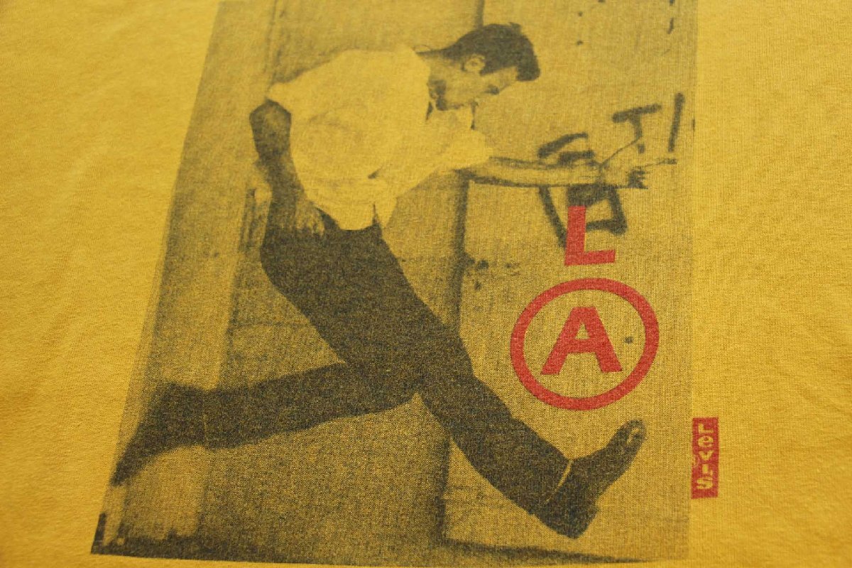 ★90s ポルトガル製 Levi'sリーバイス フォトプリント コットンTシャツ マスタード XL★ユーロ オールド ジーンズ ロゴ ビッグサイズ