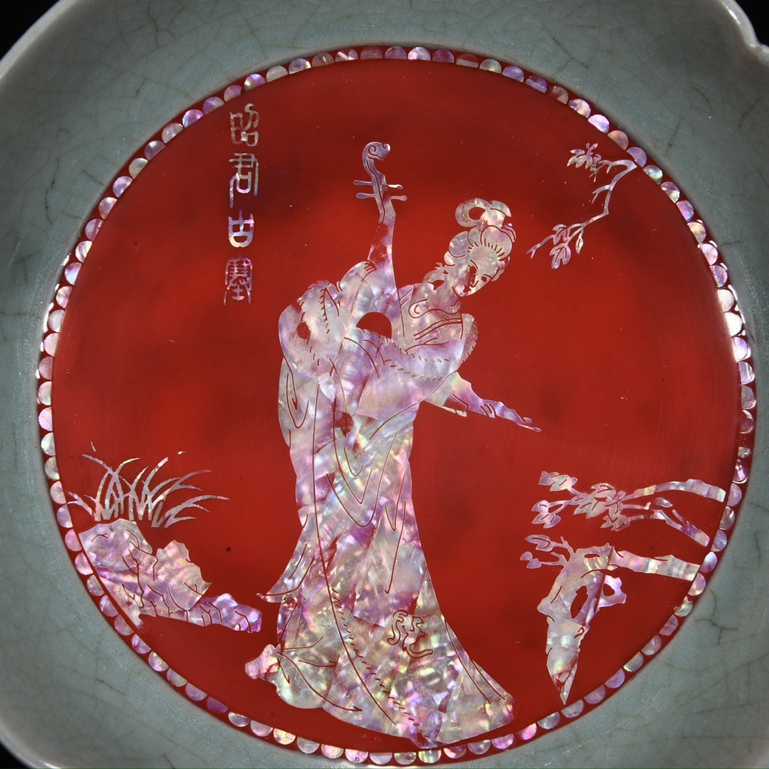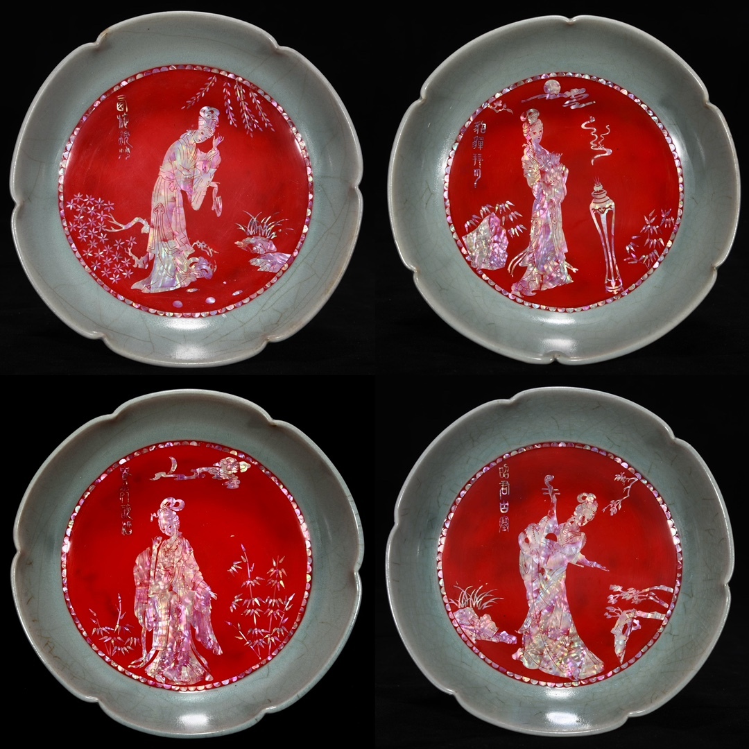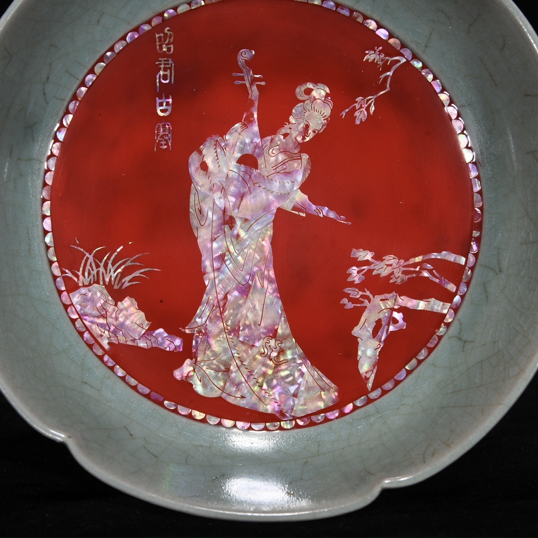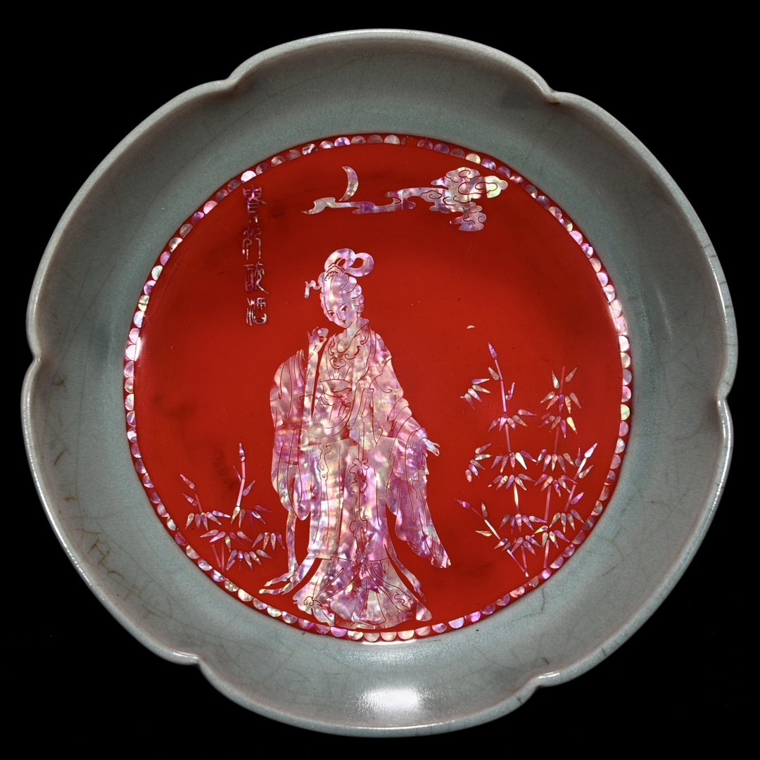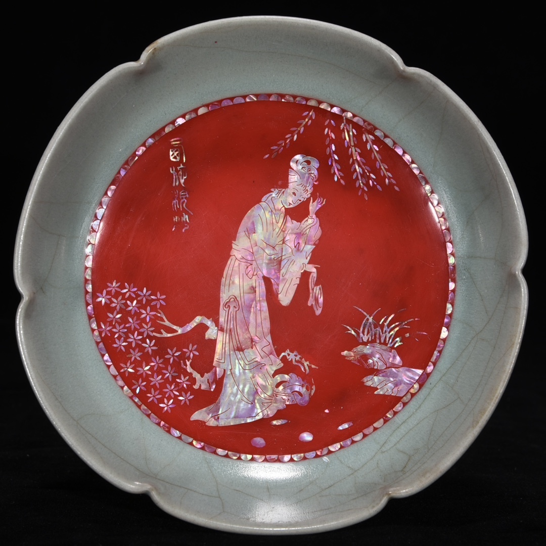 *珍品旧蔵* 宋 汝窯 螺鈿四大美女 葵口洗 陶芸 古陶磁器 中国磁器 極細工 唐物 中国古玩 骨董品 古美味 H49