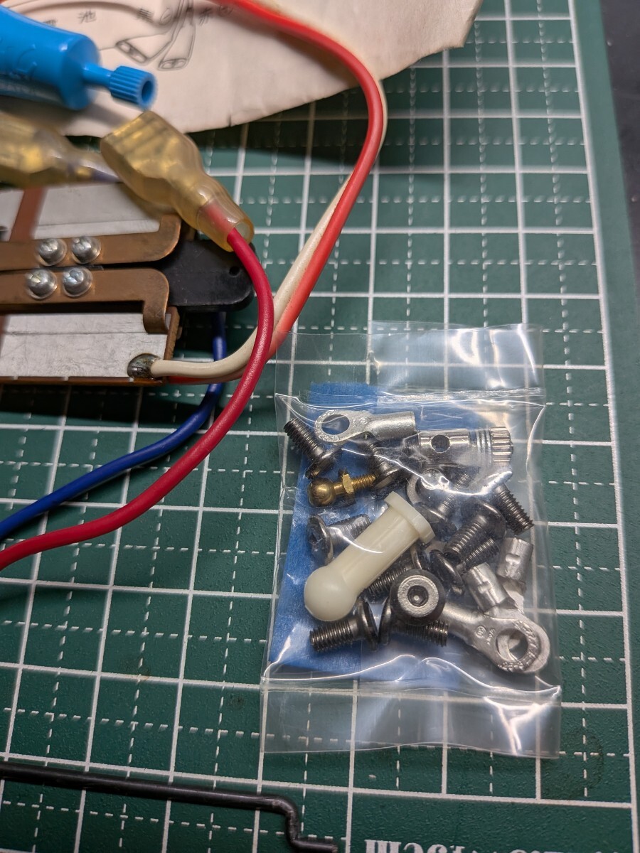 くすんでいますが未使用のスピードコントローラーとあり合わせのリンケージパーツのセットをゆうパケットポスト送料込みで封筒に入れて発送します。