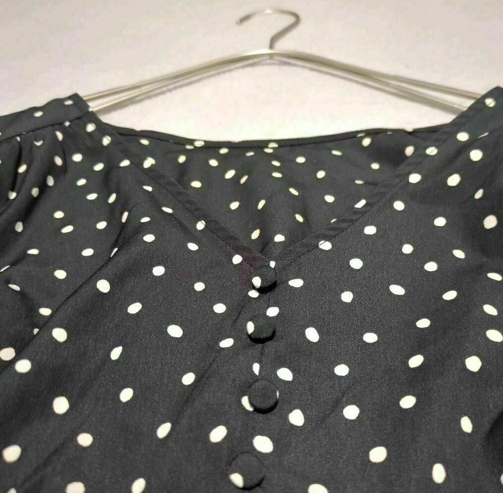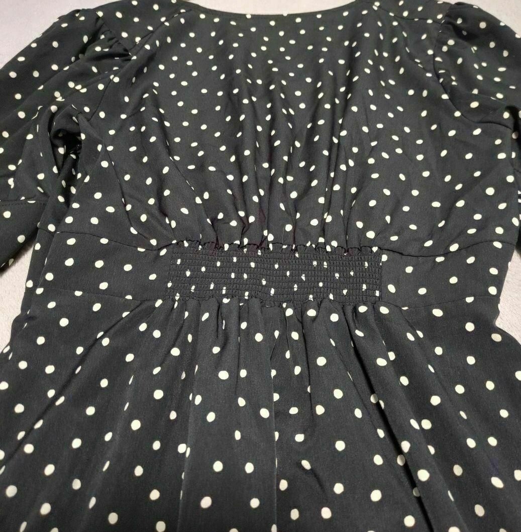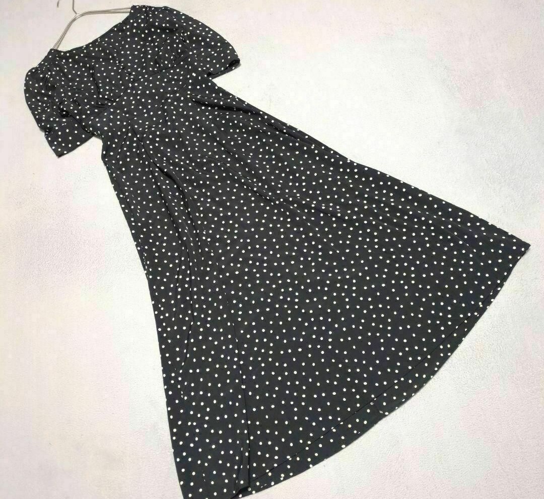 Heather ロングワンピース フレア 総柄 ドット柄 Vネック