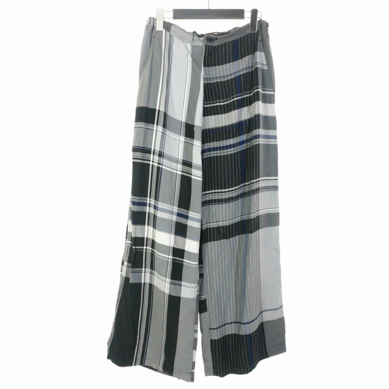 ワイズ Y's RAYON WRINKLED PLAID PANTS レーヨン チェック ワイドパンツ 2 マルチカラー YR-P33-226 レディース