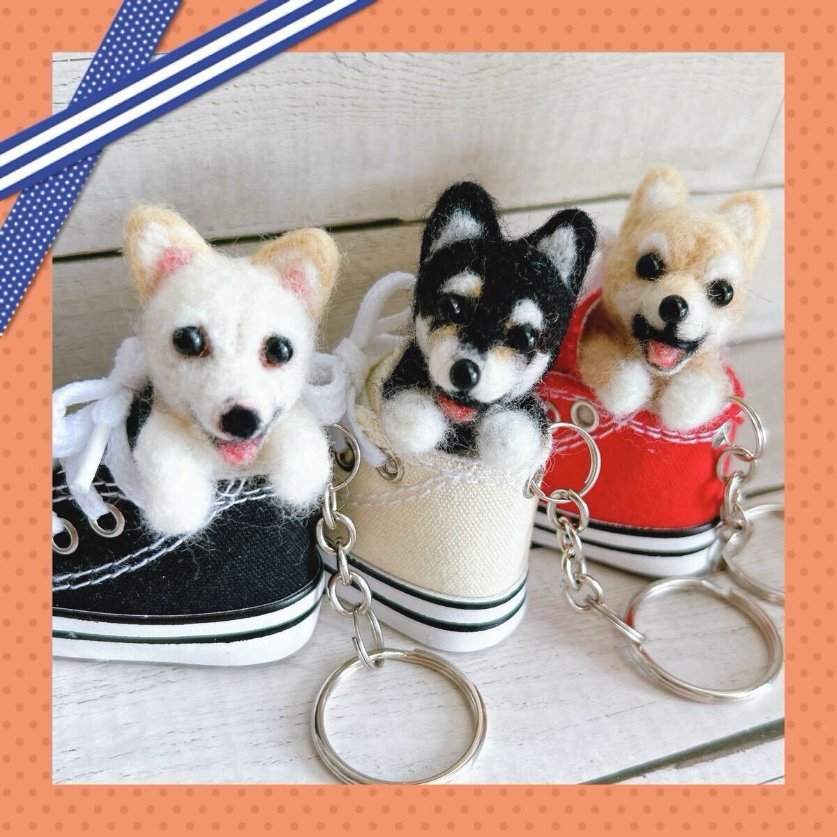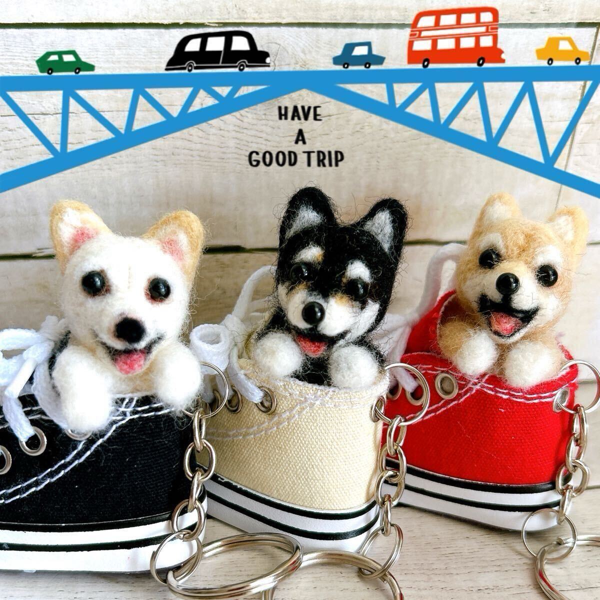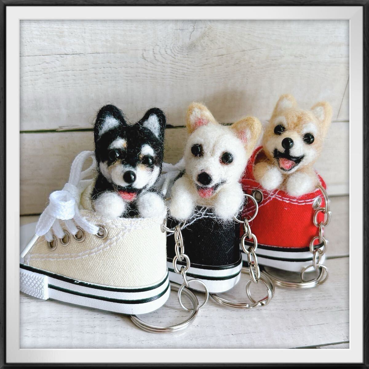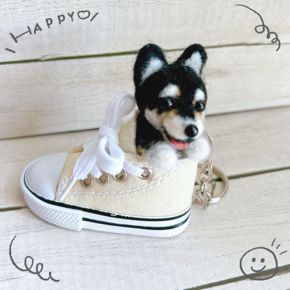 羊毛フェルトでお作りした、スニーカーマスコットの黒柴ちゃんです。