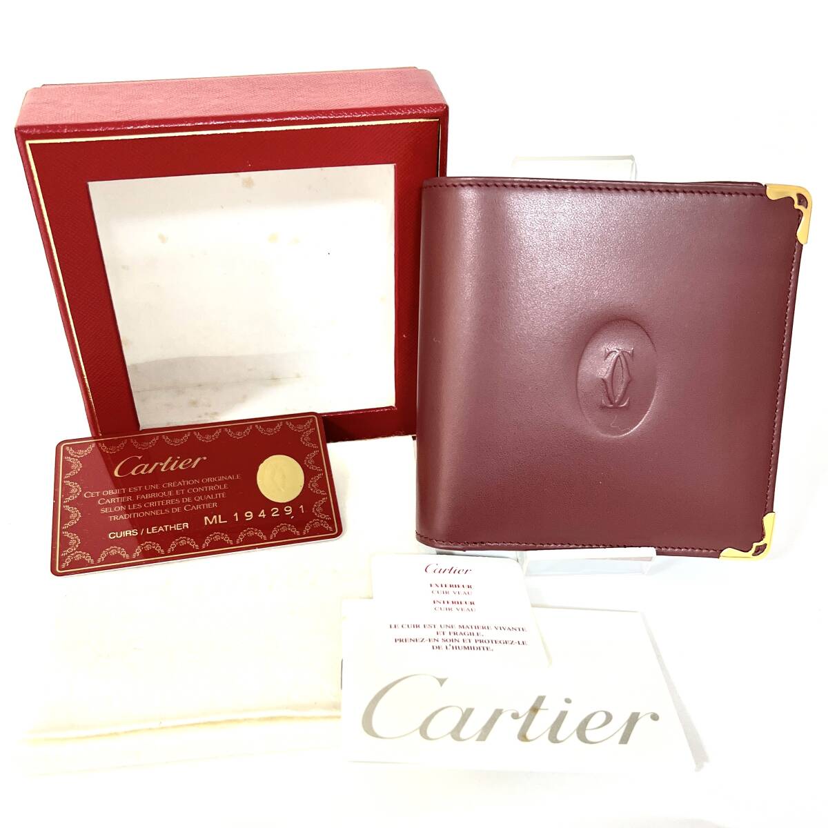 SD2200 新品未使用! 格安! Cartier カルティエ マストライン ボルドー レザー 二つ折り財布 コンパクトウォレット
